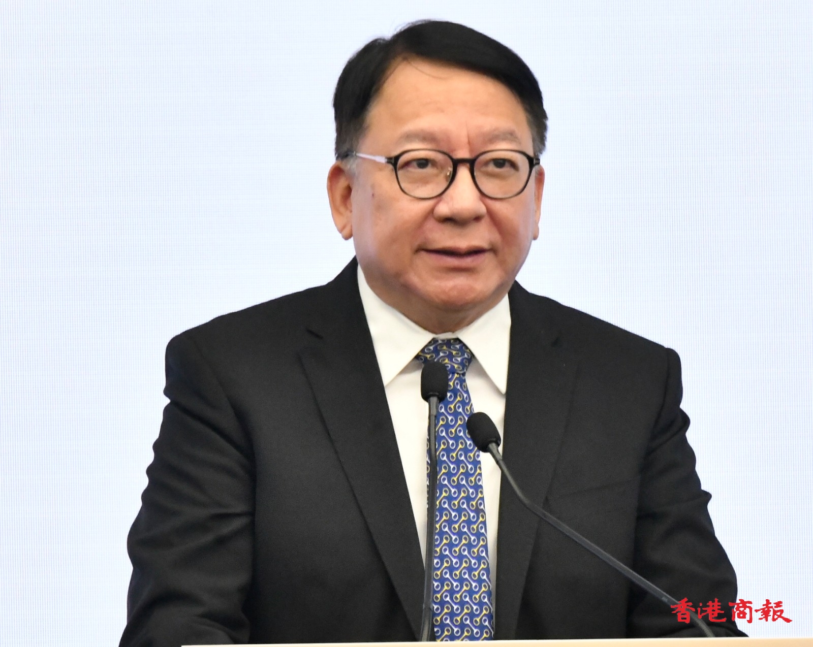 政務(wù)司司長(zhǎng)陳國(guó)基致辭。記者 蔡啟文攝