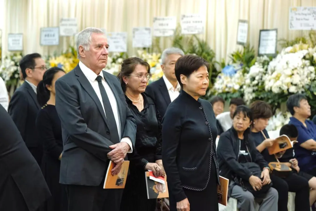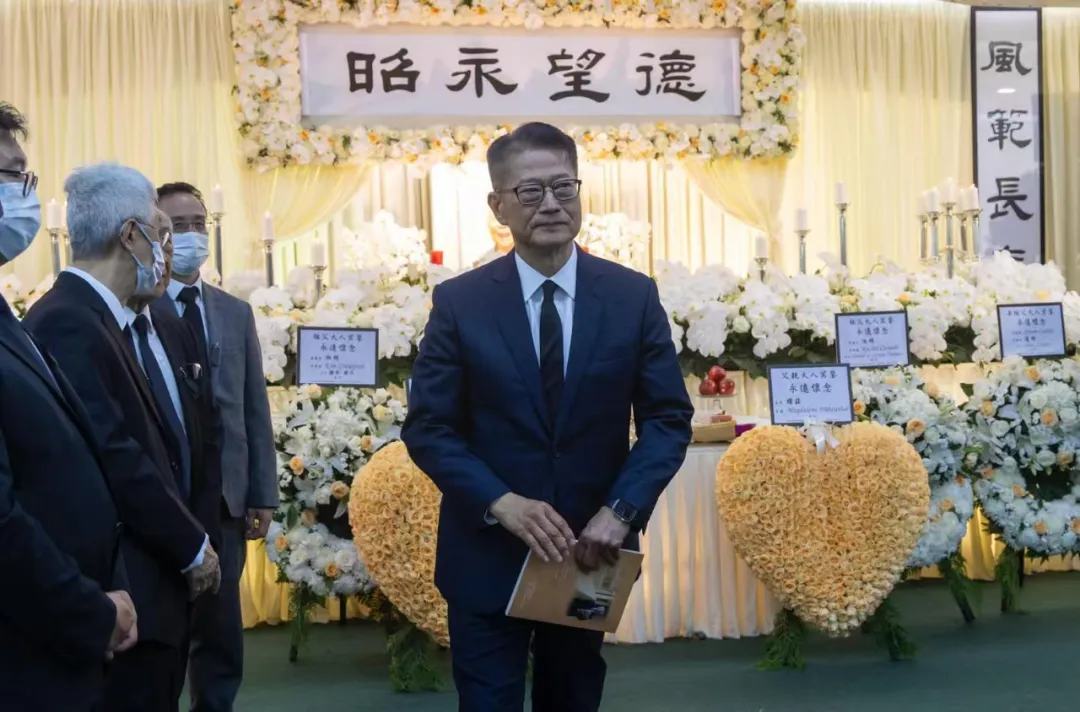26日,中聯(lián)辦副主任羅永綱、前行政長(zhǎng)官曾蔭權(quán)及林鄭月娥、政務(wù)司司長(zhǎng)兼仁大校友陳國(guó)基、財(cái)政司司長(zhǎng)陳茂波,以及教育局局長(zhǎng)蔡若蓮親臨弔唁。
