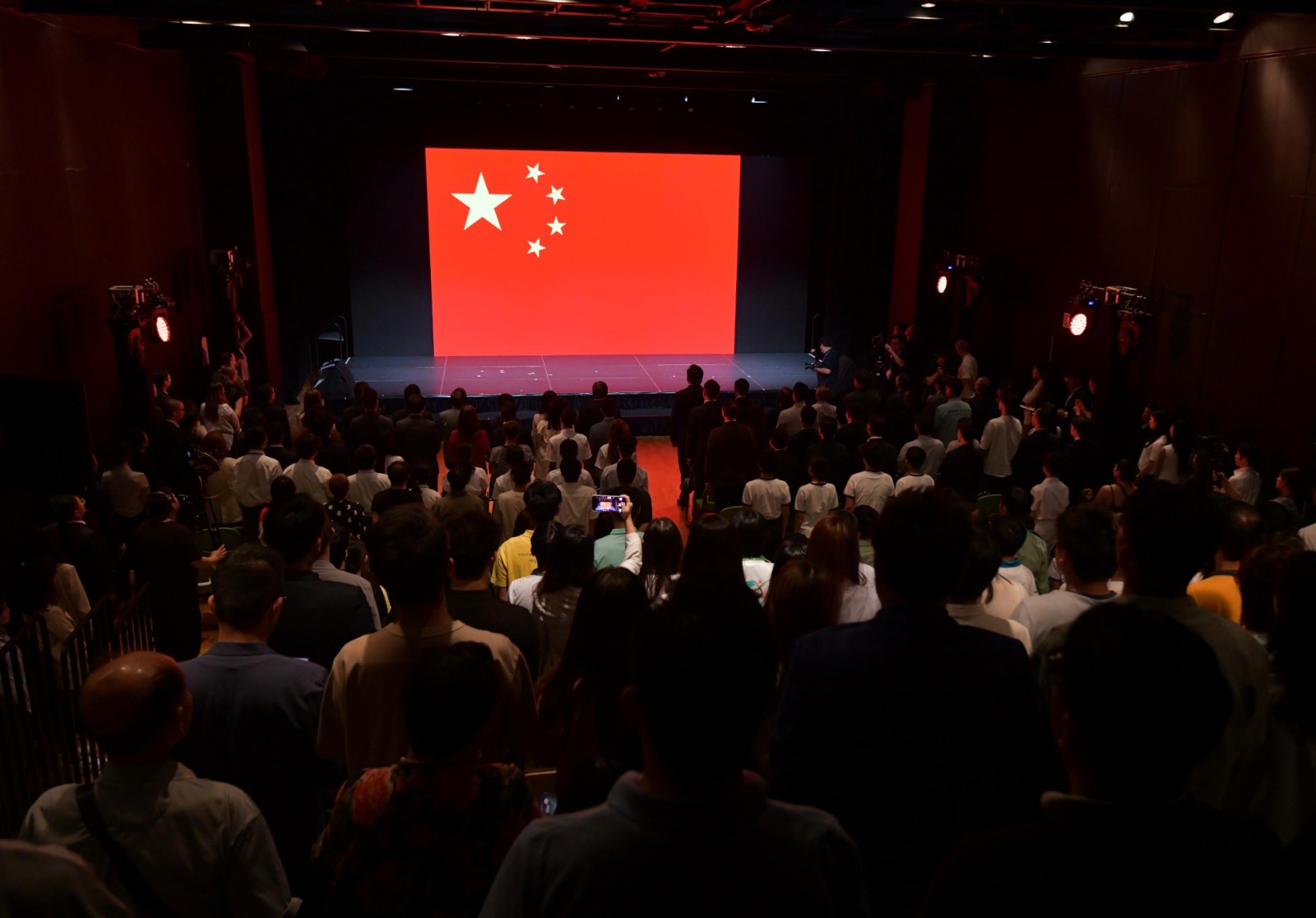 現(xiàn)場奏唱國歌環(huán)節(jié)。記者 崔俊良攝