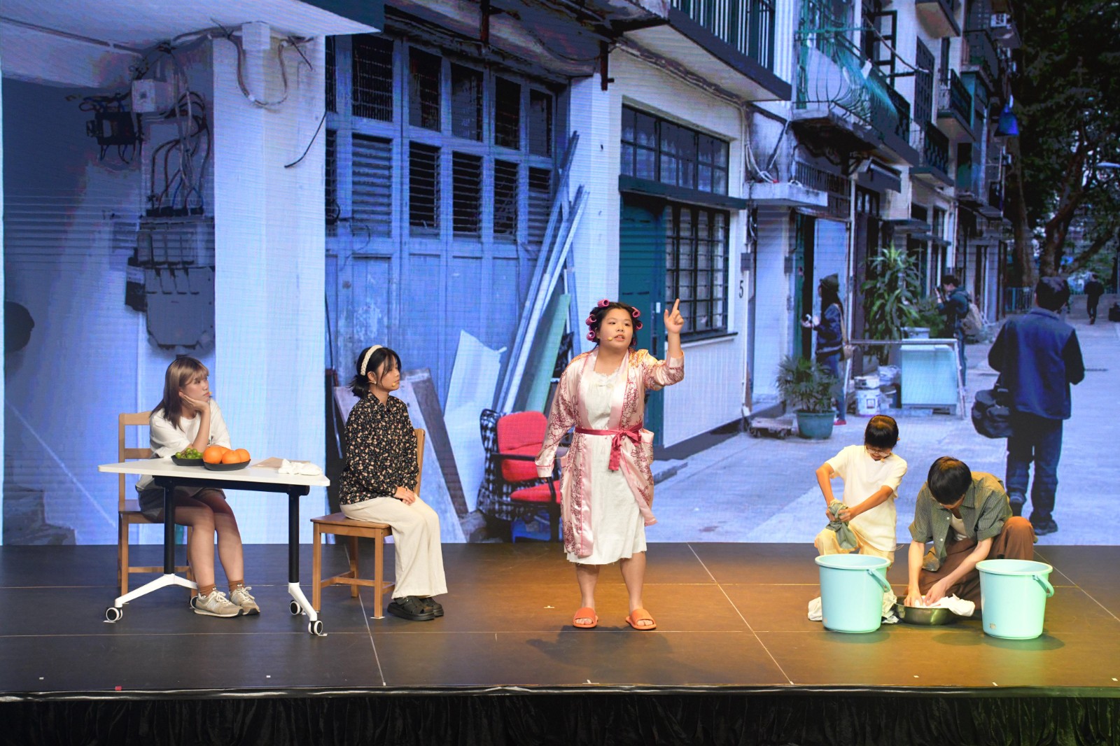 學生透過情景劇表演,重塑香港昔日「制水」時期的歷史場景,生動再現(xiàn)上一代人的艱辛記憶。記者 崔俊良攝