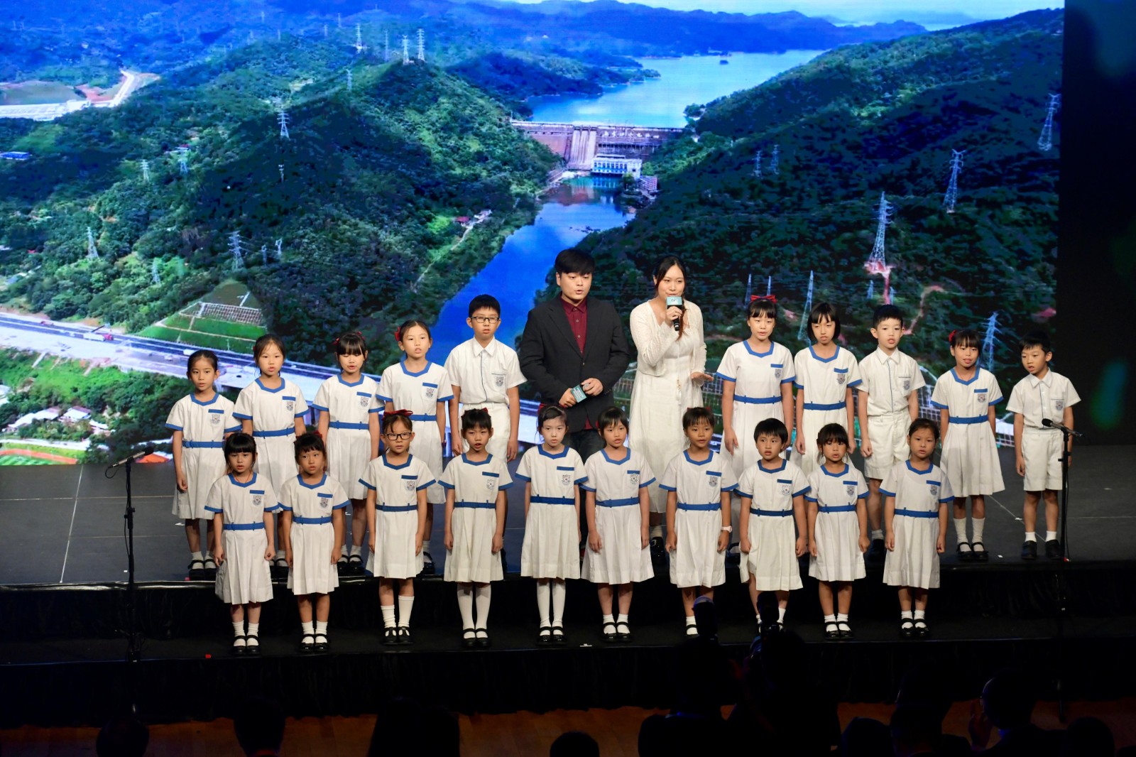 丁政凱、勞凱琪及仁濟醫(yī)院羅陳楚思小學合唱團以合唱《善流之源》致敬東江水,歌聲承載著無盡感恩。記者 崔俊良攝