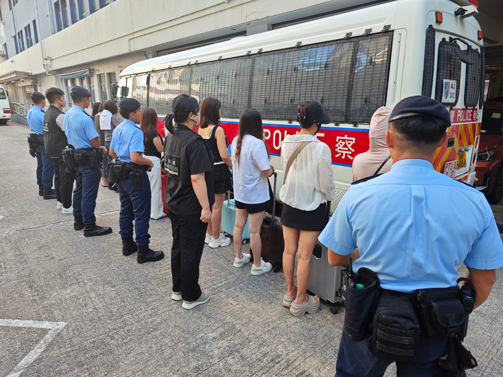 行動(dòng)中,人員共拘捕29人,包括10名內(nèi)地男子及16名內(nèi)地女子,2名本地男子及1名本地女子,年齡介乎22至67歲,分別涉嫌「逾期居留」、「違反逗留條件」、「協(xié)助及教唆違反逗留條件」、「僱用不可合法受僱的人」、「逾期居留人士接受僱傭工作」及「行使偽造文件」。行動(dòng)期間於荃灣區(qū)拘捕的15名內(nèi)地女子,涉嫌「違反逗留條件」,所有被捕人現(xiàn)正被扣留調(diào)查。