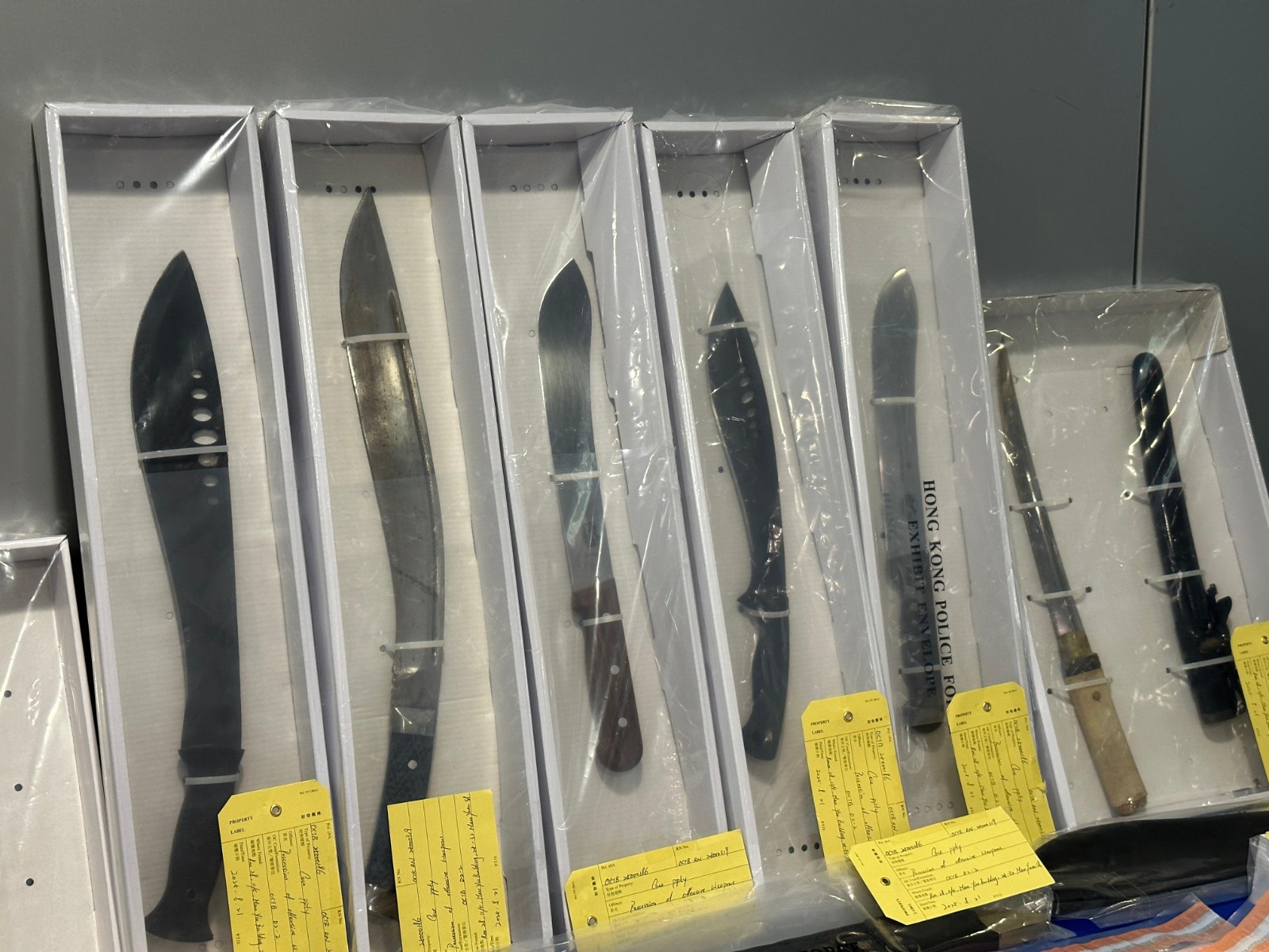 O記探員透過情報(bào)收集及深入調(diào)查,發(fā)現(xiàn)一個(gè)犯罪集團(tuán)由2021年至今,利用多個(gè)銀行戶口及其開設(shè)的公司,清洗約6億元犯罪得益。警方上周起一連9日展開行動(dòng),共拘捕89男66女,年齡介乎16至76歲,分別涉嫌「洗黑錢」、「販運(yùn)危險(xiǎn)藥物」、「管有危險(xiǎn)藥物」、「自稱三合會(huì)成員」、「藏有攻擊性武器」、「經(jīng)營(yíng)非法賭博場(chǎng)所」和「無(wú)牌賣酒」等罪行。行動(dòng)中檢獲大批武器,包括開山刀、牛肉刀及伸縮棍。另檢獲約42萬(wàn)元現(xiàn)金,總值約20萬(wàn)元的懷疑危險(xiǎn)藥物,以及面值約180萬(wàn)元的懷疑賭具。
