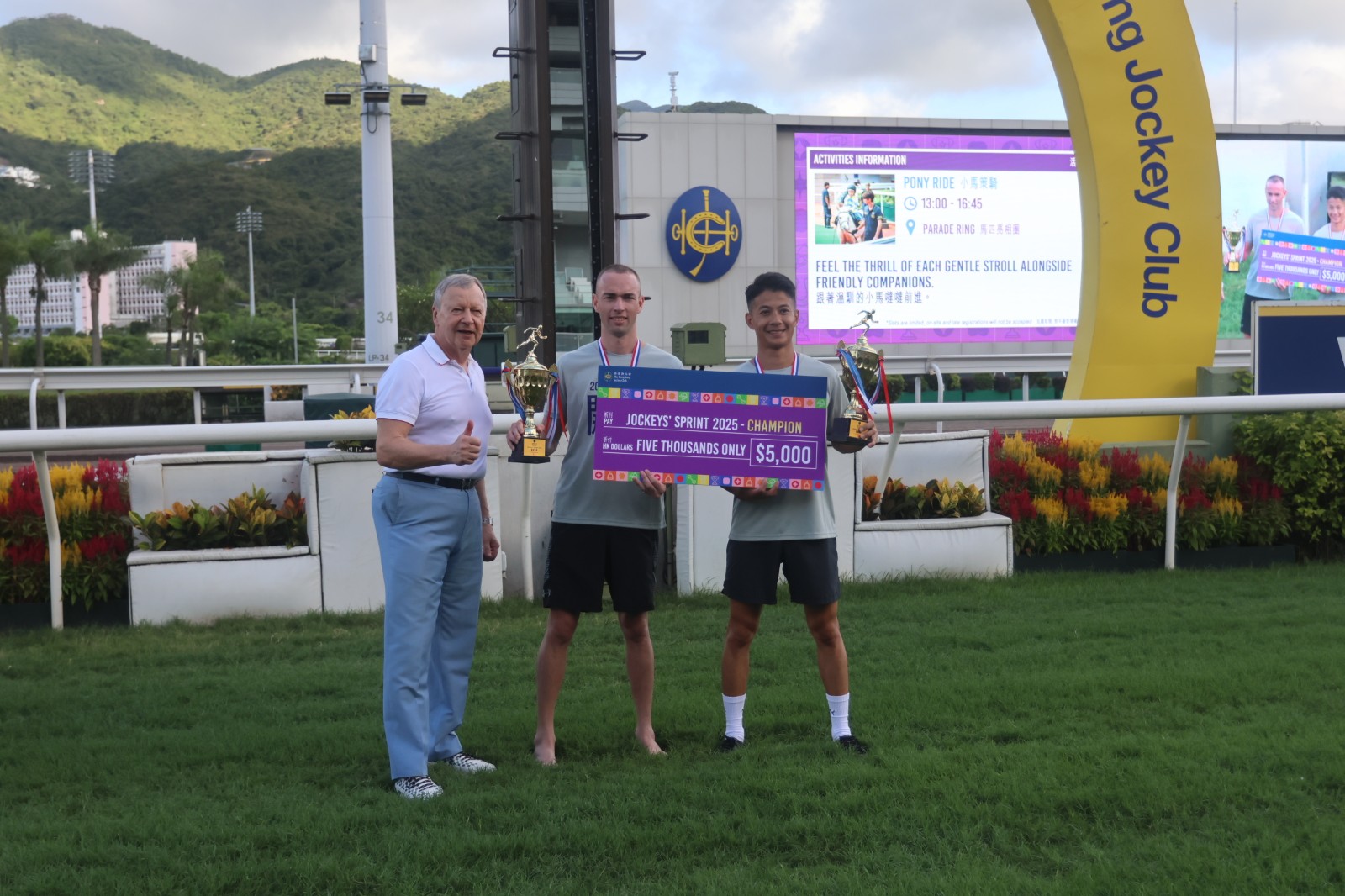 馬會行政總裁應家柏擔任評判,在馬會賽馬事務執(zhí)行總監(jiān)夏定安發(fā)施號令下,一眾參賽騎師奮勇向前,梁家俊/奧爾民組合先聲奪人,率先觸線,獲得應家柏在賽後頒發(fā)冠軍獎盃、獎牌及5000港元獎金的支票。黃智弘/艾道拿組合力拼第二,獲頒亞軍獎牌及3000港元獎金的支票;而周俊樂/布文組合則奪得季軍,獲頒季軍獎牌及2000港元獎金的支票。