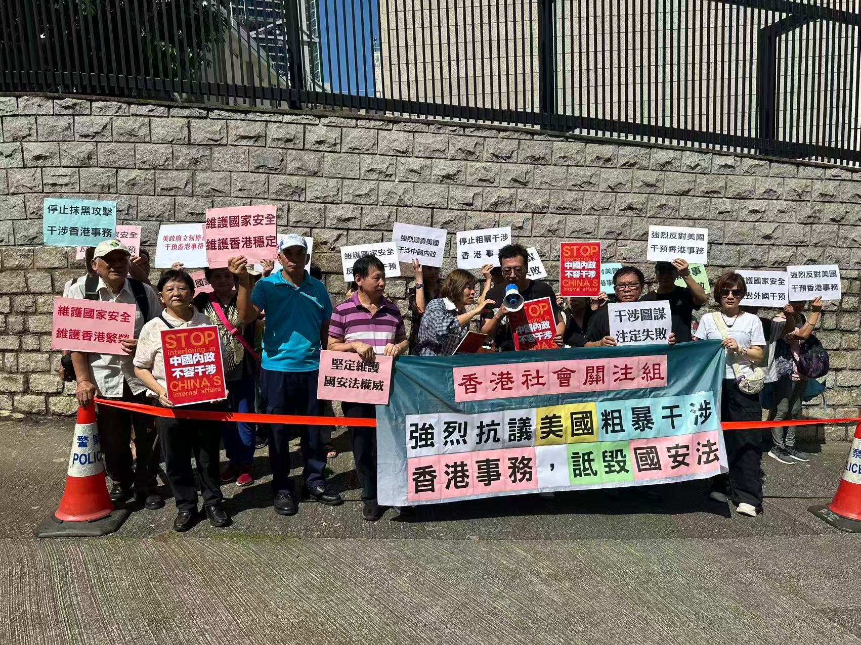 請(qǐng)願(yuàn)市民表示,美國近期發(fā)布所謂「香港政策法報(bào)告」,不僅惡意抹黑香港國安法,還對(duì)中央政府和特區(qū)政府有關(guān)官員實(shí)施無理「制裁」;美國政客更惡意詆毀香港警方依法通緝反中亂港分子的正常執(zhí)法行動(dòng),對(duì)香港的人權(quán)法治狀況進(jìn)行無端指責(zé),妄圖干預(yù)香港國安案件的審理。