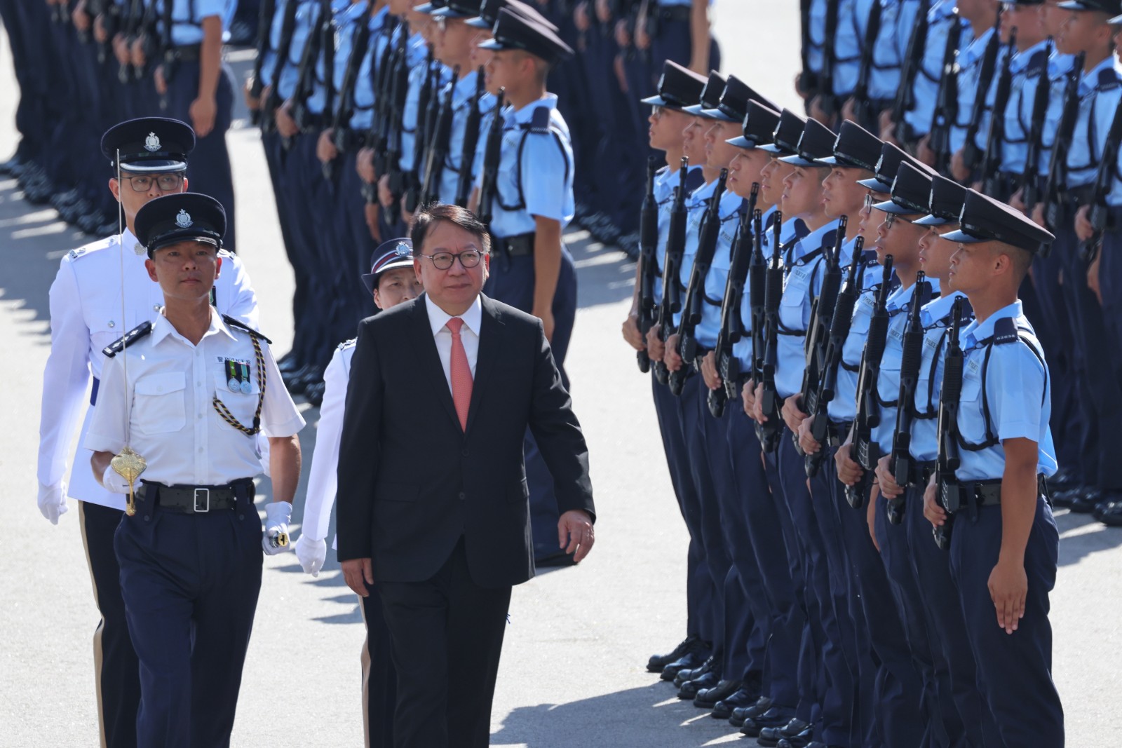 陳國基指出,不論處理街頭求助,還是打擊嚴重罪行,專業(yè)、公正和透明,是贏得市民信任的關(guān)鍵。他期望結(jié)業(yè)學(xué)員深入社區(qū),用同理心理解市民的需要,用高效率的行動回應(yīng)社會的關(guān)注。每一次秉公執(zhí)法,每一次幫助有需要的人,都是累積市民對法治的尊重和對警隊的信心。要記住只有扎根香港、扎根市民、服務(wù)市民,香港才能夠有長治久安的社會根基。