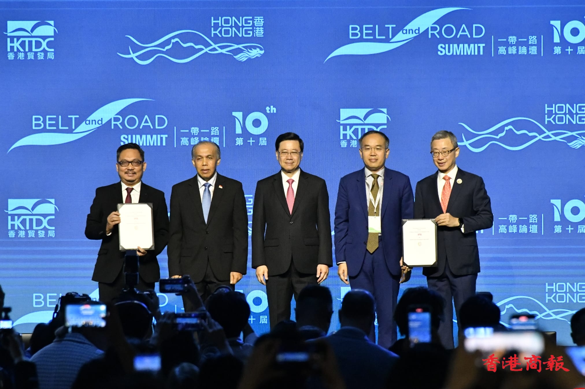 政府及貿(mào)發(fā)局合辦的「一帶一路高峰論壇」,今天(10日)起一連兩日在灣仔會展舉行,吸引來自17個「一帶一路」國家和地區(qū)超過90位政商界領(lǐng)袖及逾百個代表團(tuán)參與,與會者逾6000人。行政長官李家超致辭時表示,香港與「一帶一路」國家在論壇期間簽署九份諒解備忘錄和合作協(xié)議,在避免和解決爭端、海關(guān)、反腐敗、氣象學(xué)、投資促進(jìn)等領(lǐng)域上合作;今日亦會宣布36項企業(yè)與企業(yè)之間的協(xié)議和交易,涉及金融、科技、物流、專業(yè)服務(wù)和教育等方面,總值近10億美元。