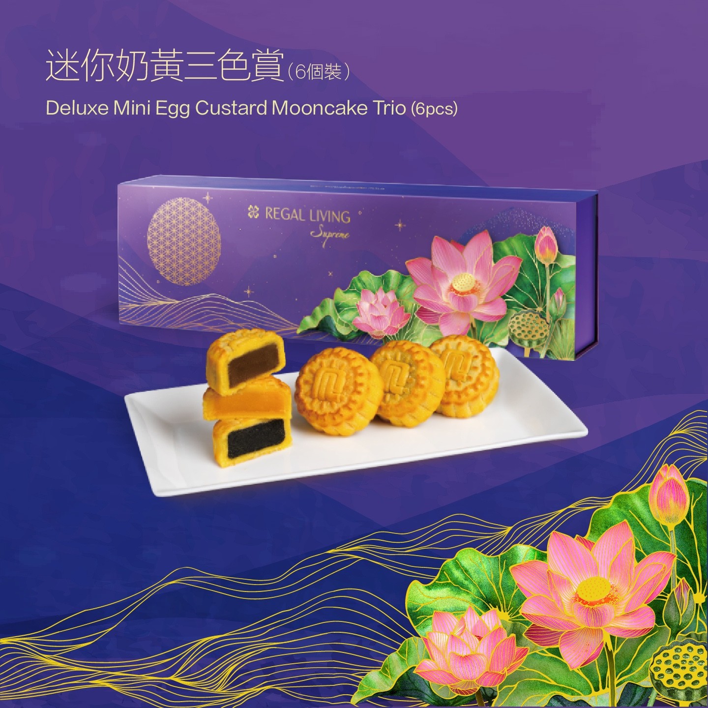 三色月餅禮盒(6個裝)(原價HK$398、預(yù)訂優(yōu)惠價HK$325)精選三款人氣口味,玫瑰奶皇麻糬月餅將玫瑰花香融入綿密奶皇餡中,淡雅芬芳令人回味;金沙奶皇麻糬月餅以鹹蛋黃與奶皇的黃金比例,帶來鹹甜交織的豐富層次;黑芝麻麻糬月餅將傳統(tǒng)芝麻香與煙韌麻糬結(jié)合,散發(fā)濃郁的芝麻香味。雙黃白蓮蓉月餅(4個裝)(原價HK$448、預(yù)訂優(yōu)惠價HK$368)是孝敬長輩之選,選用純正湘蓮製作出白蓮蓉,口感幼滑細(xì)膩,配以經(jīng)烘烤後金黃的鹹蛋黃,鹹香四溢,令人回味。