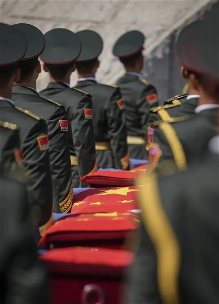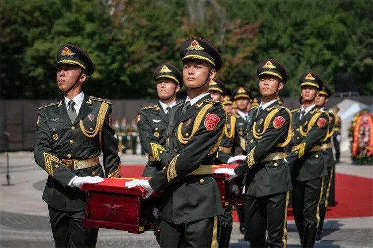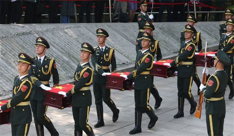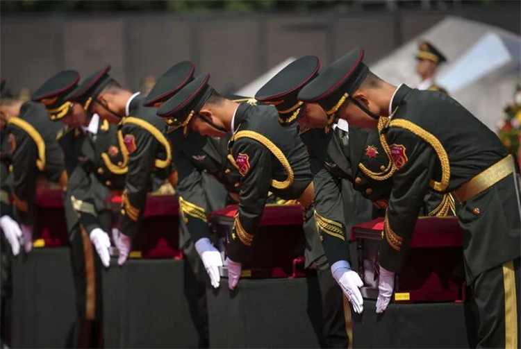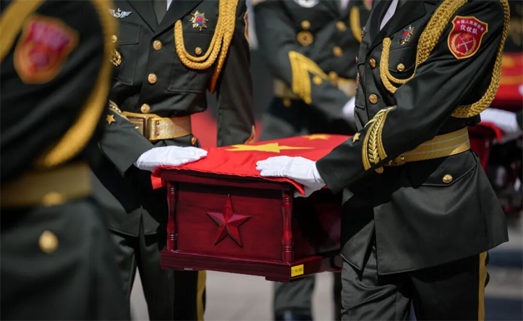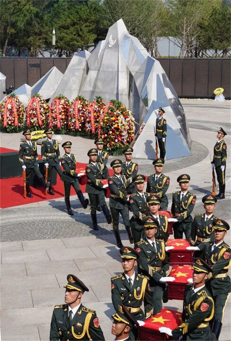 9月13日,第十二批在韓中國人民志願軍烈士遺骸安葬儀式在瀋陽抗美援朝烈士陵園舉行。30位志願軍烈士英靈,在闊別祖國70多年後回到中華大地安息。(圖源 新華社)