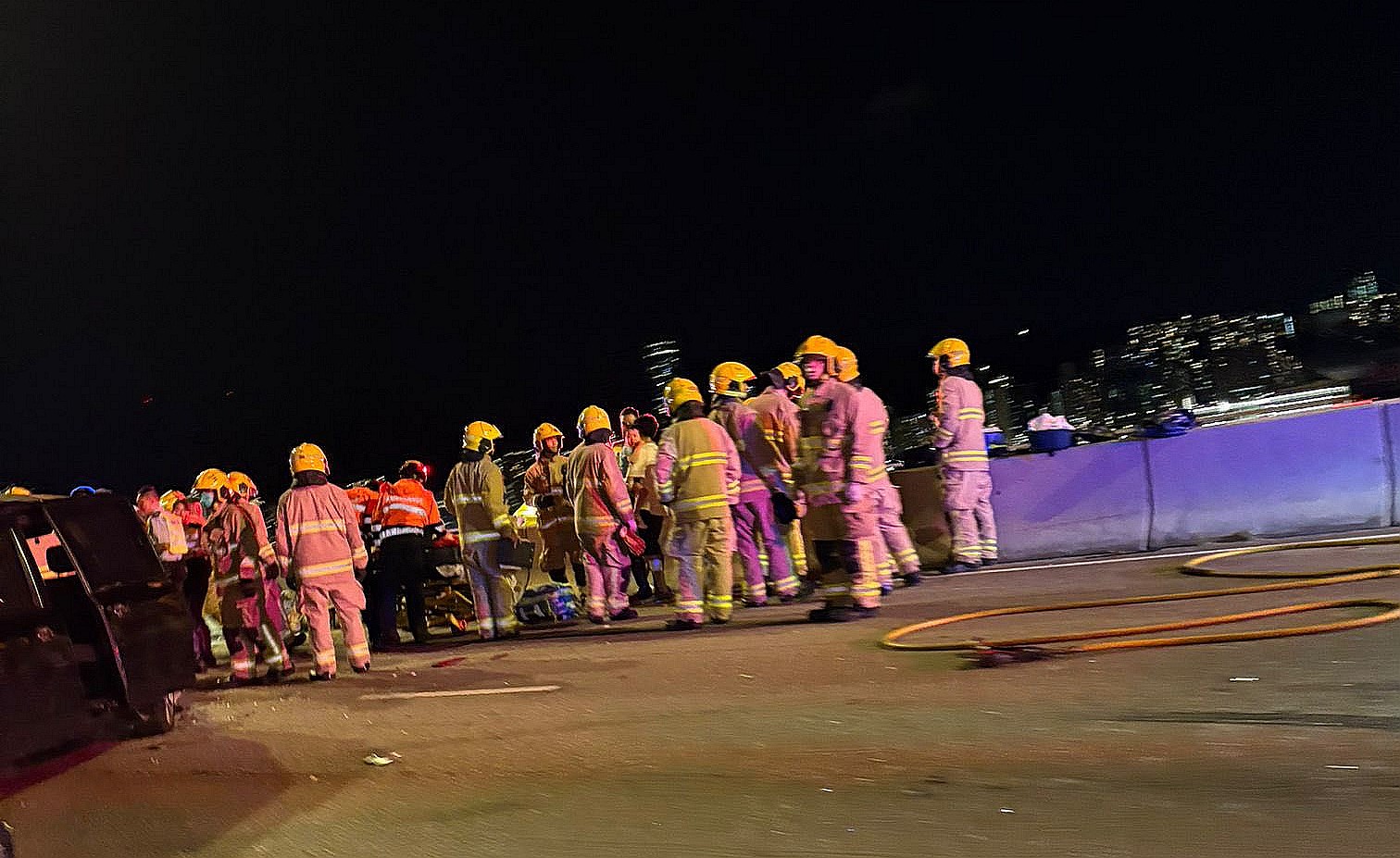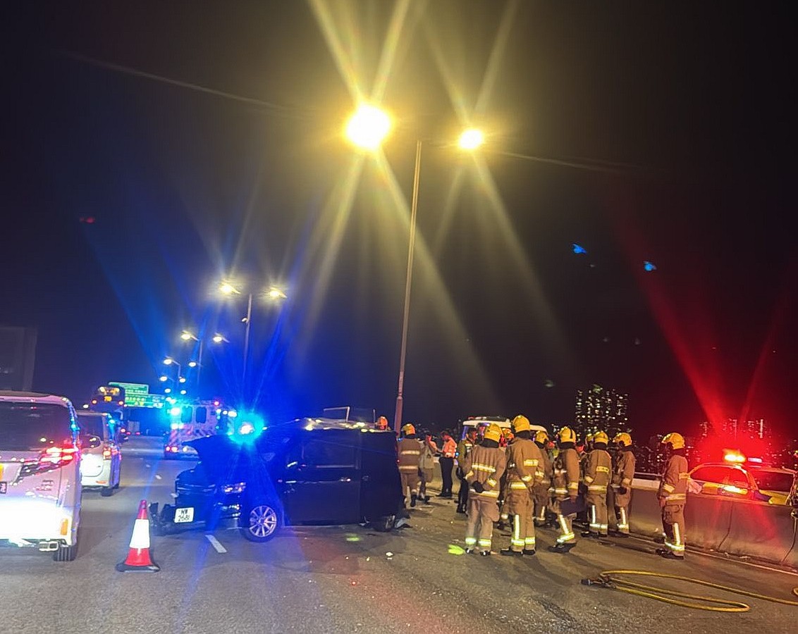 受事故影響,觀塘繞道往油塘方向近觀塘碼頭的部分行車(chē)線一度封閉,事故原因仍有待調(diào)查。(記者區(qū)天海)