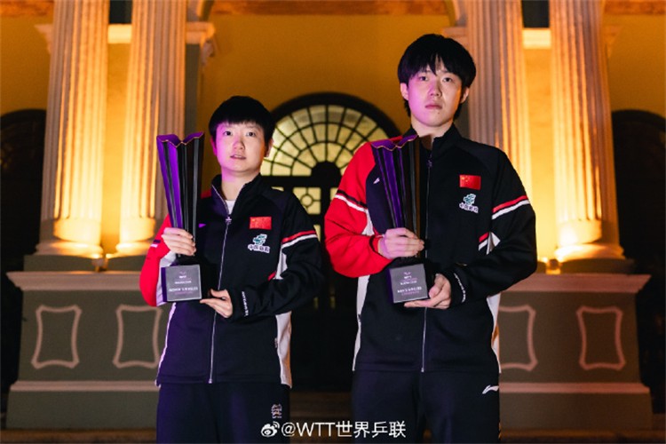 王楚欽、孫穎莎成澳門冠軍賽三冠王 發(fā)冠軍城市宣傳照