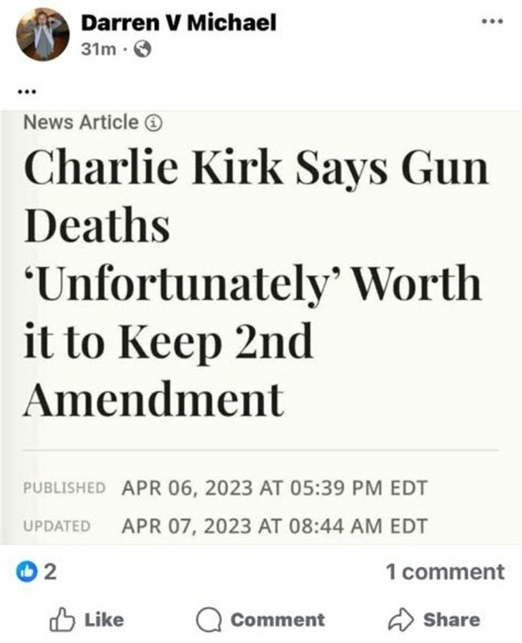 據(jù)路透社、福克斯新聞臺等媒體報道,柯克遭槍殺以來,在美國至少有15人因在網(wǎng)上發(fā)表「不當」言論被解僱或停職,其中包括記者、學術(shù)工作者和教師等。