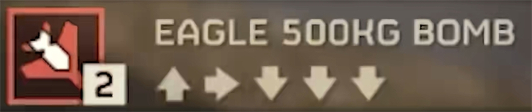 遊戲《絕地潛兵2》(Helldivers 2)中「『飛鷹』500千克炸彈」的指令與該串箭頭相符。(網(wǎng)絡(luò)圖片)
