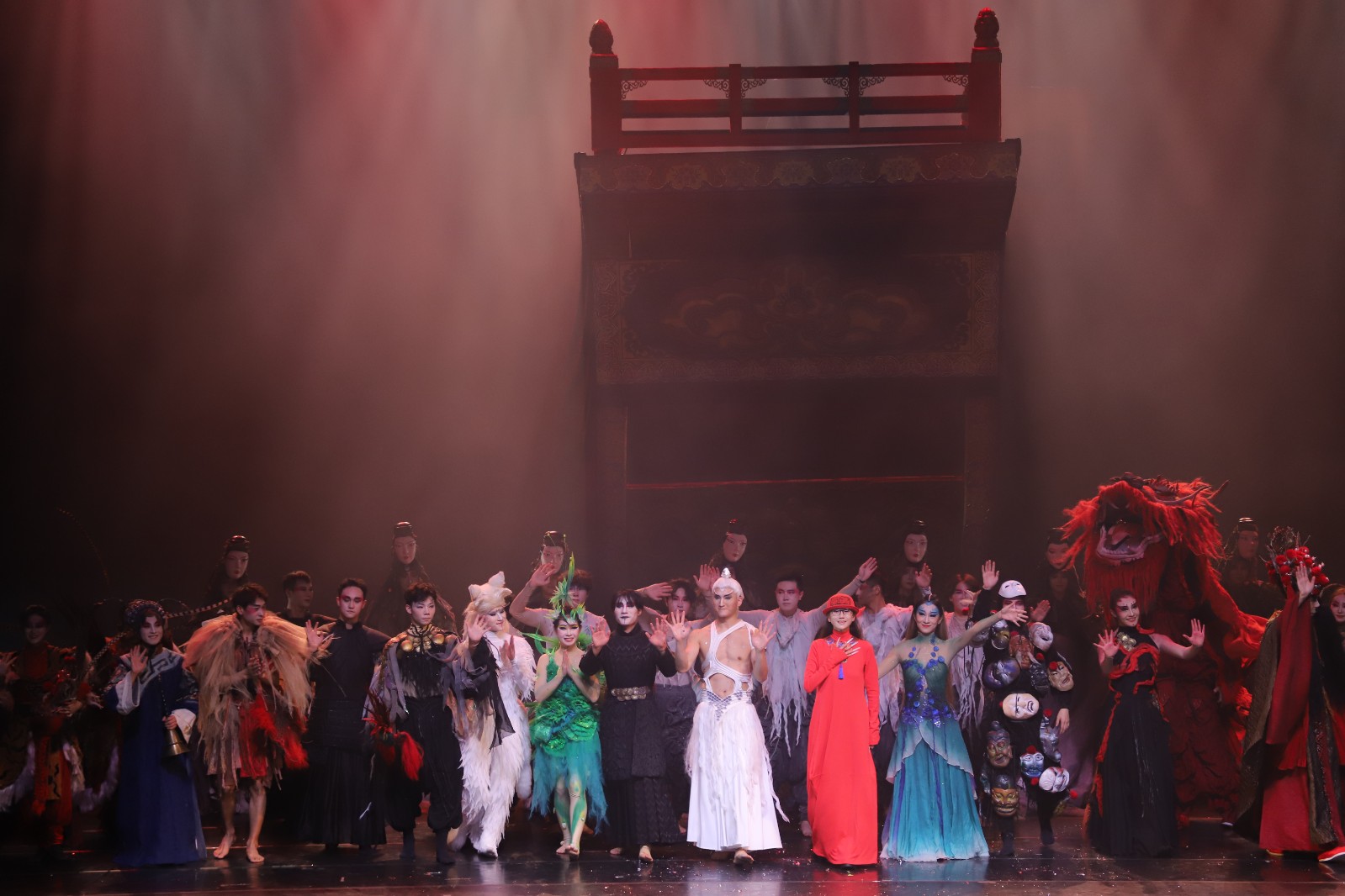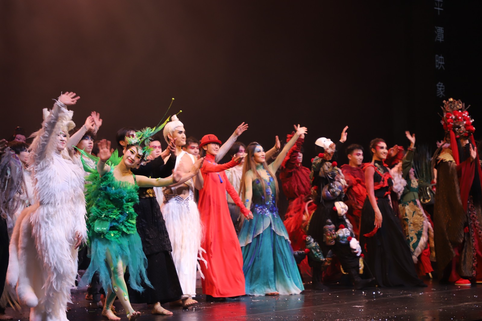 演出結(jié)束後,舞臺劇總導(dǎo)演楊麗萍驚喜現(xiàn)身,與全體演員一同向現(xiàn)場觀眾致意。她以優(yōu)雅謙和之姿,對香港觀眾的熱烈回應(yīng)表示感謝,現(xiàn)場氣氛達到高潮。楊麗萍親臨臺前致意,不僅是對香港這一國際舞臺的崇高致敬,更是對香港觀眾深切厚愛的真誠回應(yīng)?!镀教队诚蟆吩谙愀鄢晒ι涎荩粌H展現(xiàn)了中華優(yōu)秀傳統(tǒng)文化的當(dāng)代表達,也是兩岸文化同根同源的生動詮釋。 (記者:Janice)