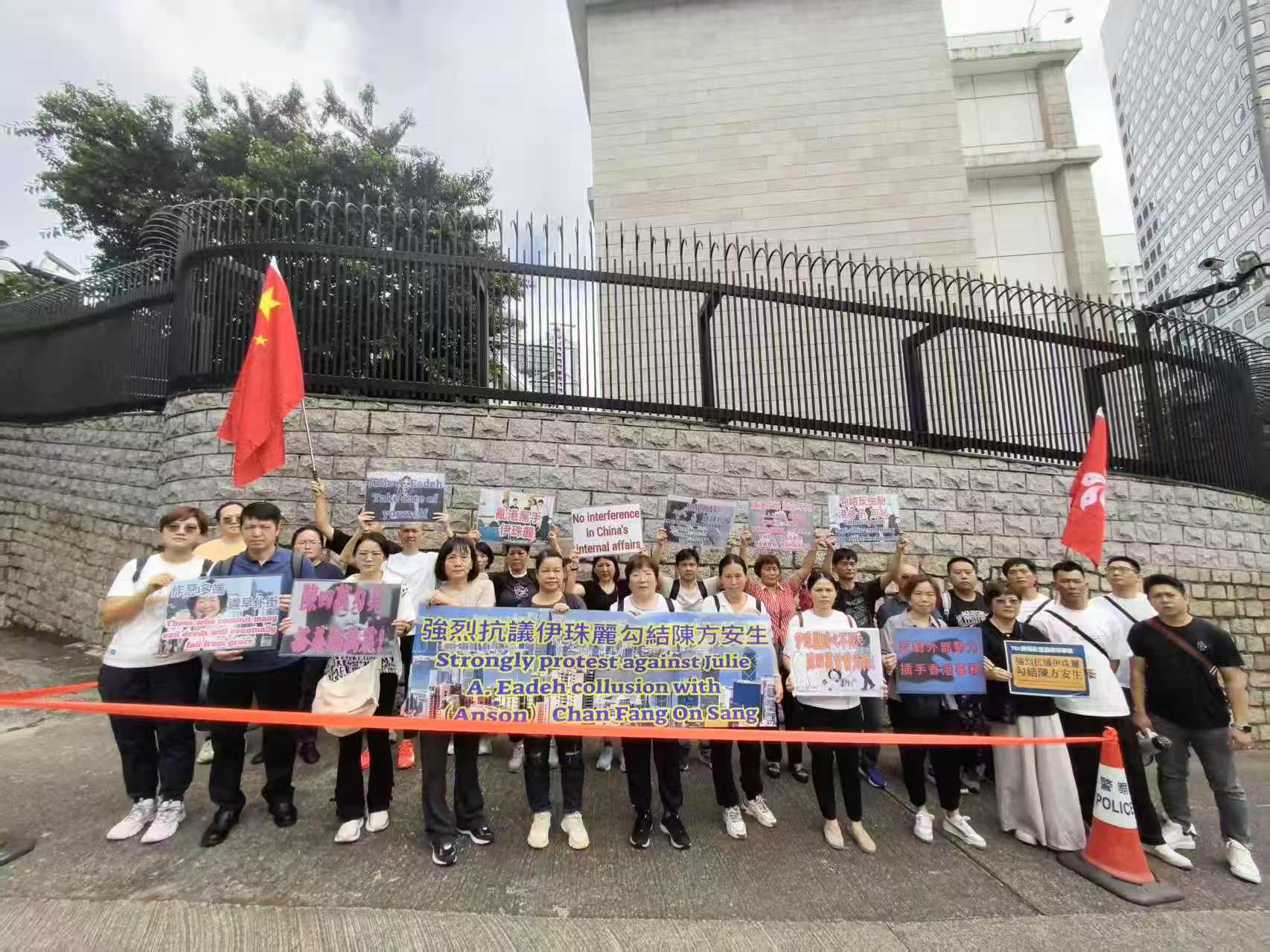 今日(23日)上午,多批市民自發(fā)前往美國(guó)駐港澳總領(lǐng)館抗議,強(qiáng)烈譴責(zé)美國(guó)駐港澳總領(lǐng)事伊珠麗勾結(jié)陳方安生禍亂香港。他們批評(píng)伊珠麗的行徑,嚴(yán)重破壞香港的繁榮穩(wěn)定,對(duì)此表示強(qiáng)烈不滿和堅(jiān)決反對(duì)。