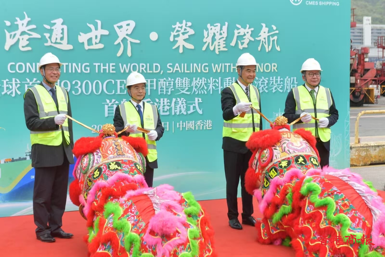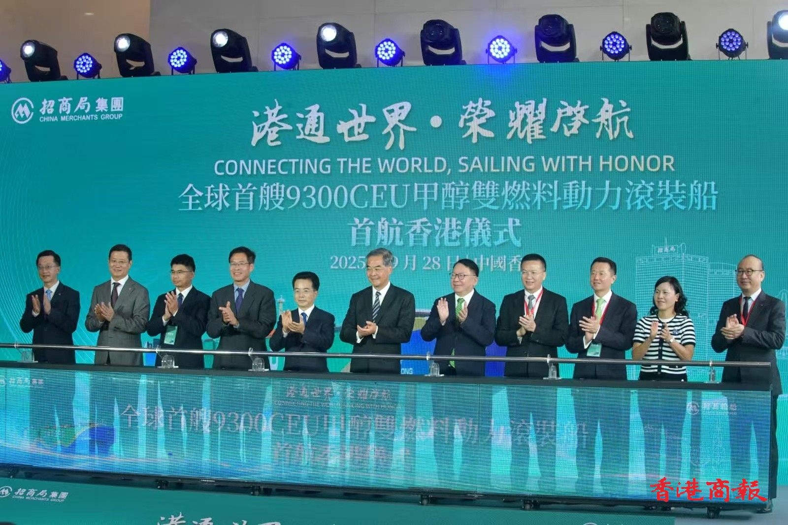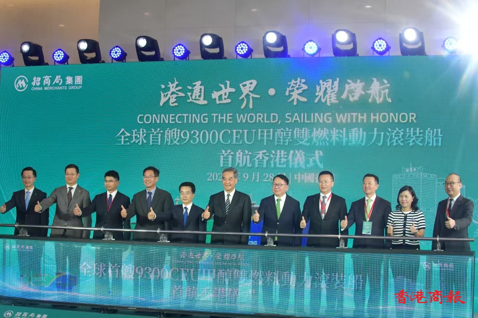 招商輪船:9300CEU甲醇雙燃料動(dòng)力滾裝船首航香港儀式。圖:崔俊良攝