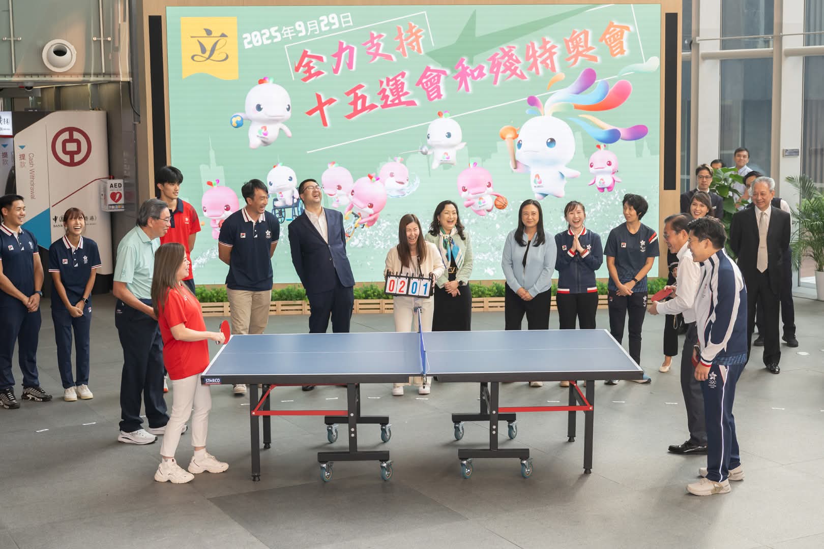 為響應(yīng)十五運(yùn)會(huì),立法會(huì)本星期舉辦一連兩場(chǎng)活動(dòng),冀大家一齊為香港運(yùn)動(dòng)員打氣。圖:梁君彥fb