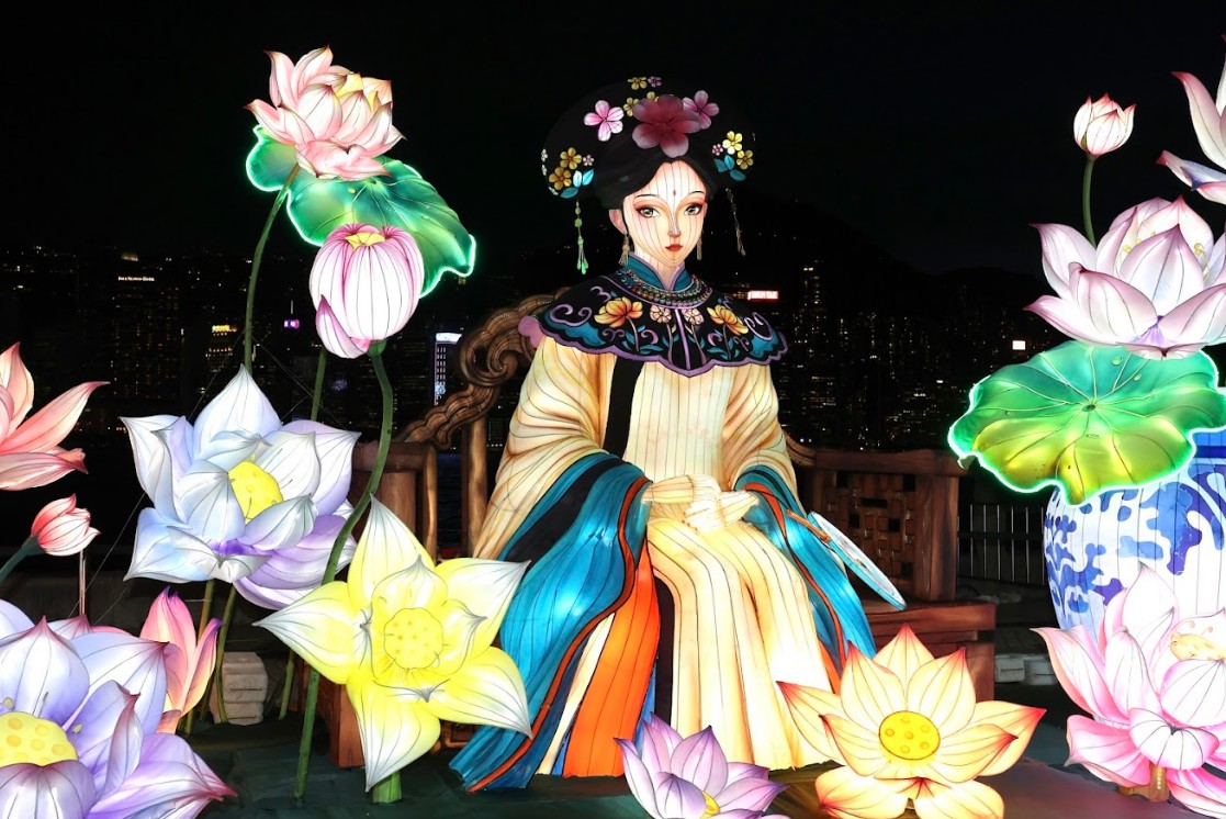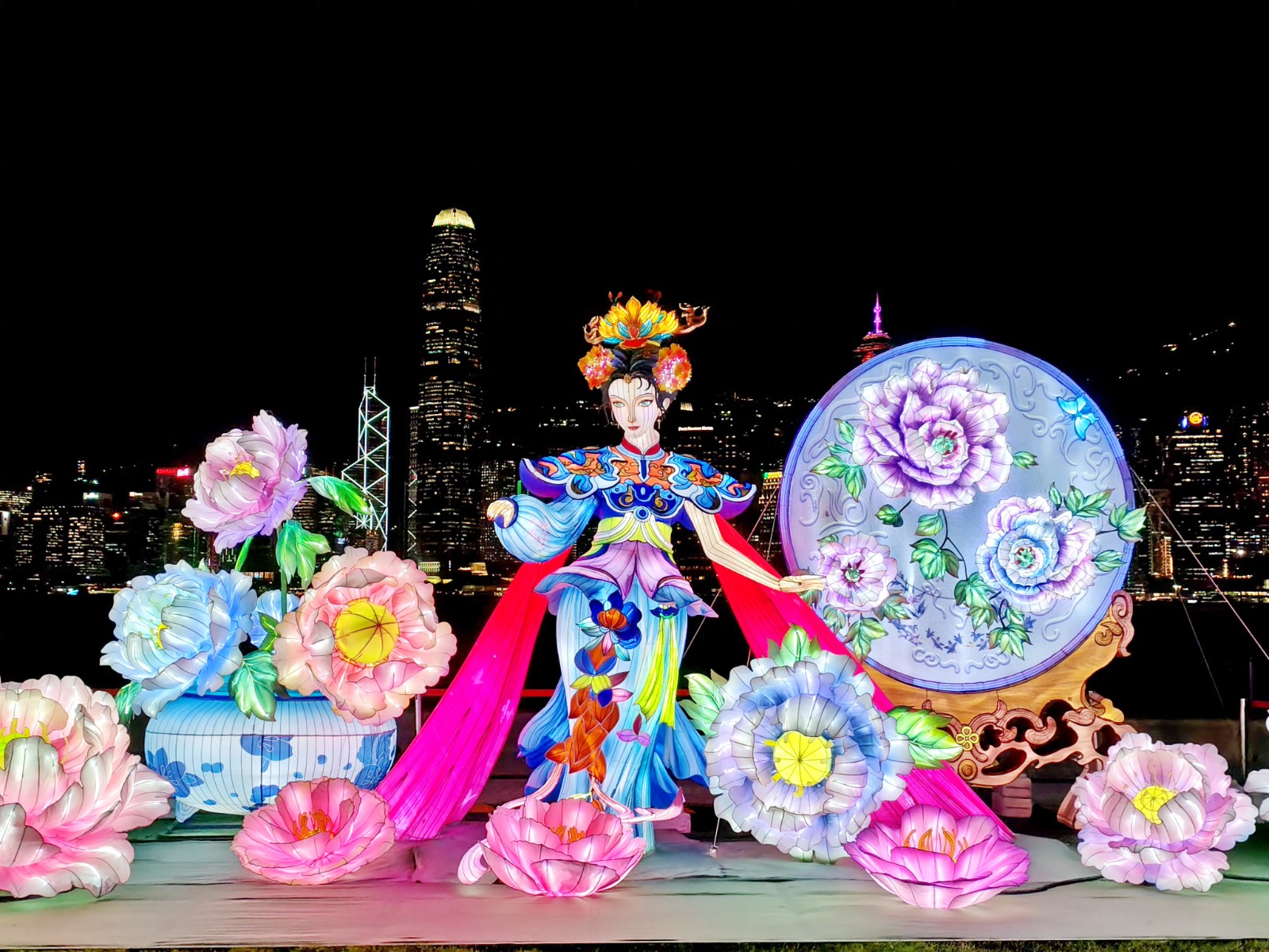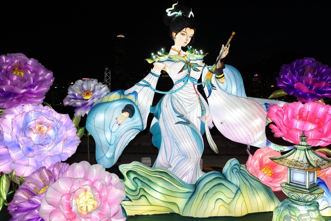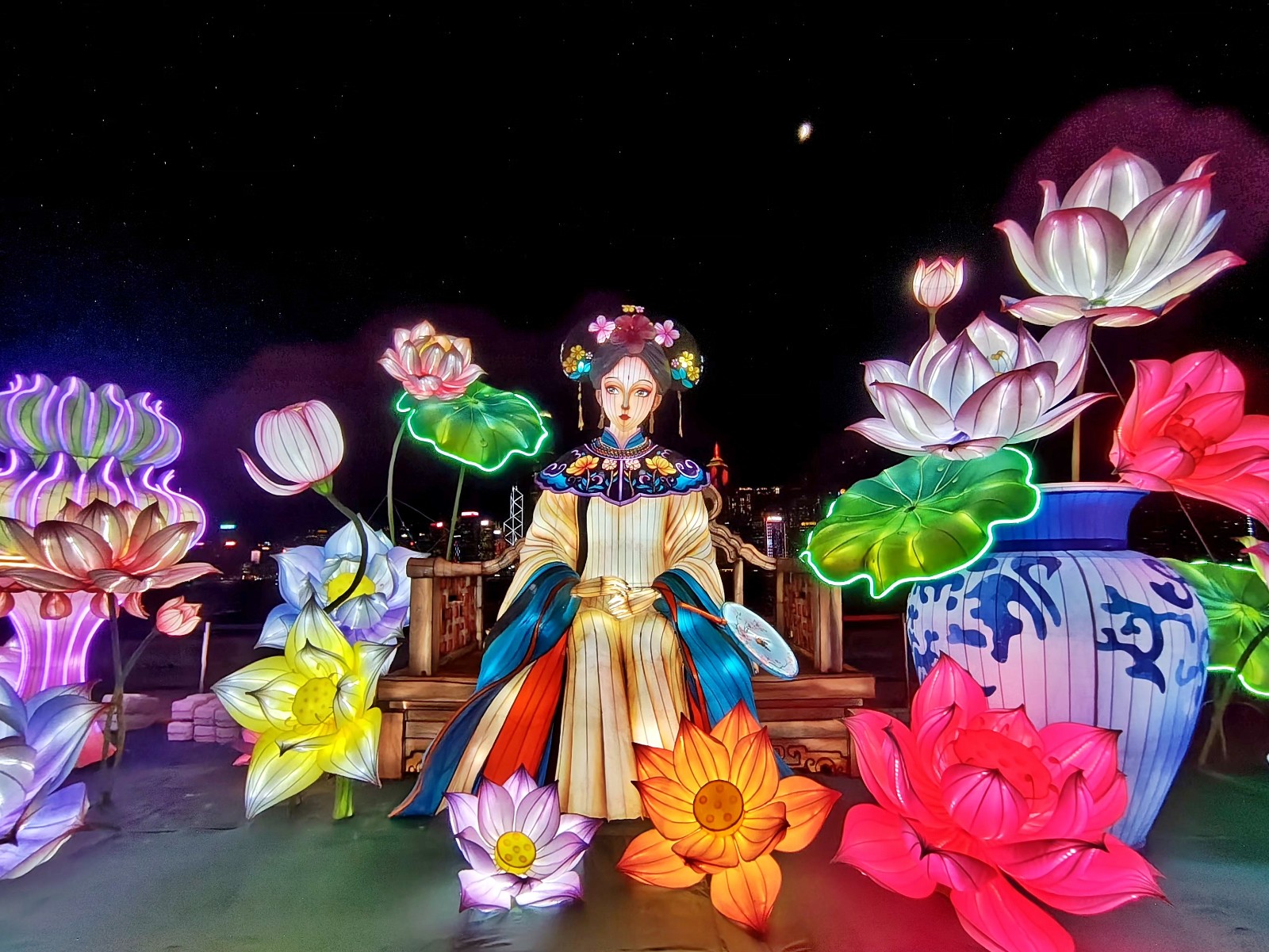本次嘉年華以華服為媒、花燈為韻,創(chuàng)新推出「白天遊園+夜間賞燈」的全時(shí)段體驗(yàn)?zāi)J?。在開幕儀式上亮燈的「香江仙子」巨型花燈燈組,由四個(gè)大型花燈組成,主燈「紫霞仙子」高12.8米,運(yùn)用國家級(jí)非遺自貢花燈技藝,結(jié)合華服等中國傳統(tǒng)文化元素,融合現(xiàn)代光影技術(shù),沿維港岸線陳列,形成獨(dú)具特色的燈光景觀。