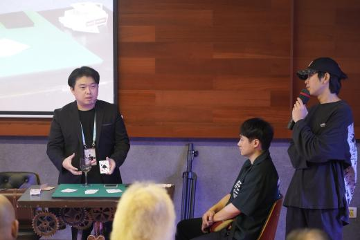 本屆魔術(shù)藝術(shù)周在延續(xù)傳統(tǒng)亮點(diǎn)的基礎(chǔ)上創(chuàng)新升級,策劃了「魔術(shù)大師講座」「魔術(shù)大師專場秀」「魔術(shù)工作坊」「魔術(shù)道具展銷會」以及壓軸大戲「魔法盛典」舞臺嘉賓展演等系列板塊。其中,備受矚目的AMA亞洲魔術(shù)冠軍大賽吸引了多位高水平選手同臺競技。經(jīng)過激烈角逐,韓國魔術(shù)師Park Do Won憑藉精湛技藝,一舉斬獲近景魔術(shù)與舞臺魔術(shù)雙料冠軍,成為本屆賽事最大贏家。