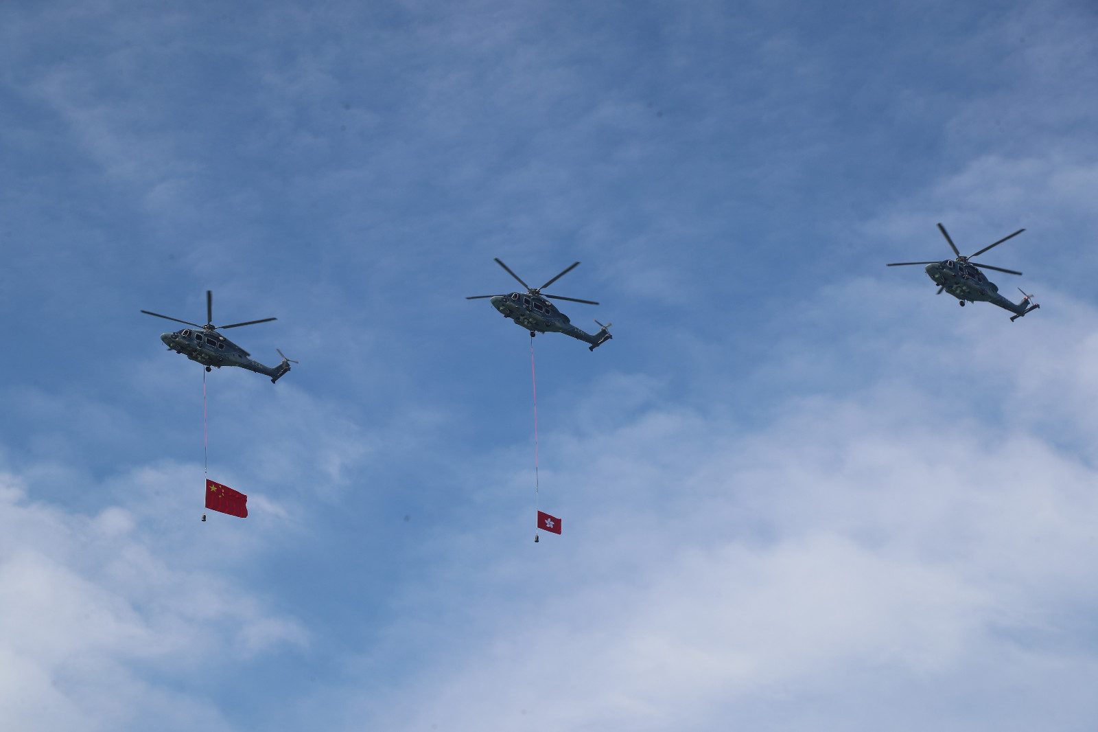 8時(shí)許,戚繼光艦和沂蒙山艦在香港特區(qū)政府船隊(duì)、駐香港部隊(duì)艦艇伴航下,緩緩進(jìn)入香港附近水域。在戚繼光艦後甲板上,100餘名官兵在甲板上擺出「76」字樣,並且,繼山東艦航母編隊(duì)抵達(dá)香港之後,再次用旗語,展示出「國(guó)安家好」的含義,為新中國(guó)成立76周年和香港市民送上祝福。岸邊,香港市民向艦上分區(qū)列隊(duì)的學(xué)員和官兵揮手致意。按照預(yù)定方案,編隊(duì)??吭诎捍捃姞I(yíng)碼頭。這是海軍戚繼光艦和沂蒙山艦2艘艦艇首次來到香港。