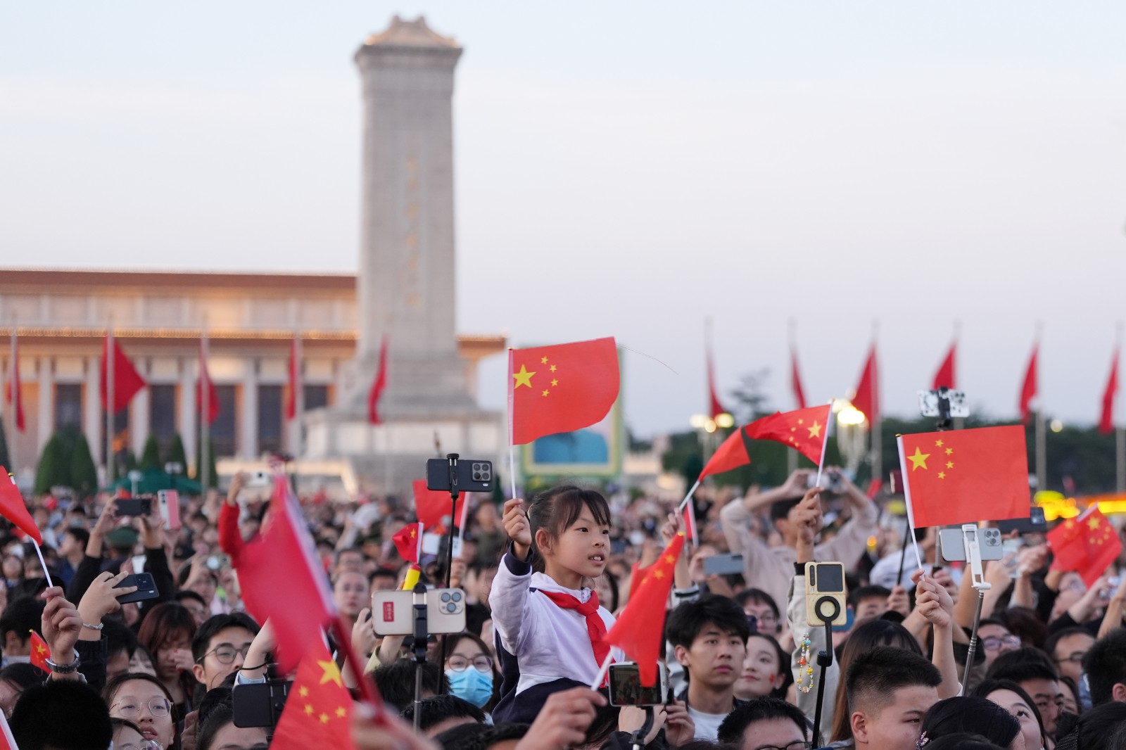 今年是中國人民抗日戰(zhàn)爭(zhēng)暨世界反法西斯戰(zhàn)爭(zhēng)勝利80周年,廣場(chǎng)上的人們?cè)谧窇浵容厒冇醚庵|築起新的長城時(shí),更加珍惜來之不易的和平。今天,持續(xù)躍升的綜合國力與經(jīng)濟(jì)社會(huì)發(fā)展的累累碩果,化作民生的堅(jiān)實(shí)保障,讓千家萬戶享有穩(wěn)穩(wěn)的幸福。