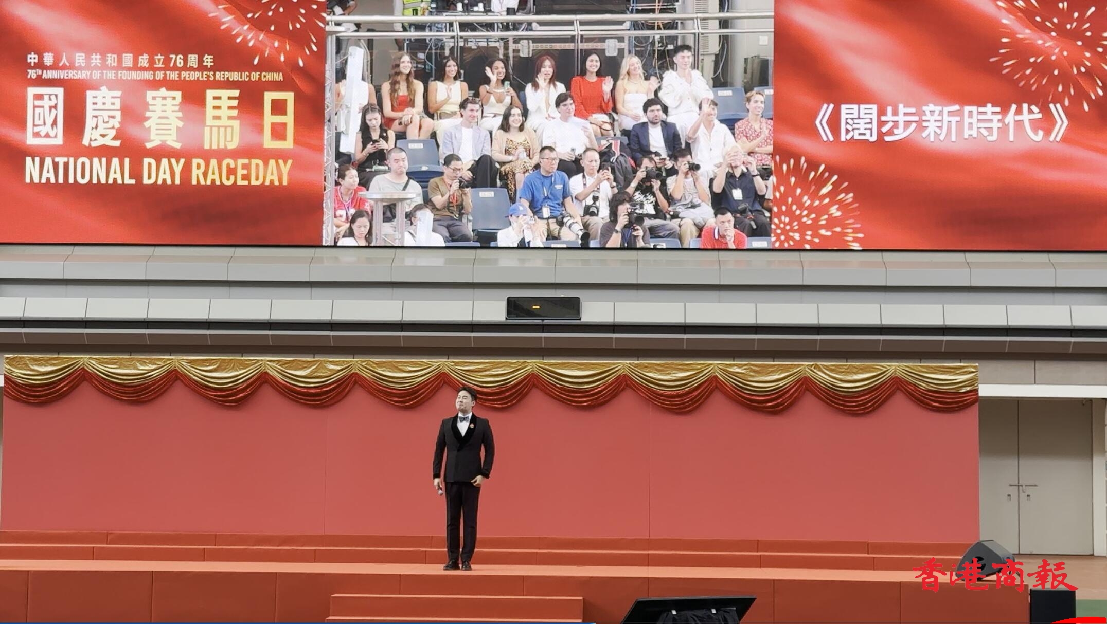 今日(1日)沙田馬場舉行國慶賽馬日,全日編有10場賽事。繼上年國慶日之後,馬會(huì)再次邀請中國著名男高音歌唱家張英席在開幕儀式上獻(xiàn)唱。張英席先後獻(xiàn)唱《闊步新時(shí)代》、《我的祖國》、《歌唱祖國》,並領(lǐng)唱國歌,為全日賽事掀開序幕 。(文/圖/片:志誠)