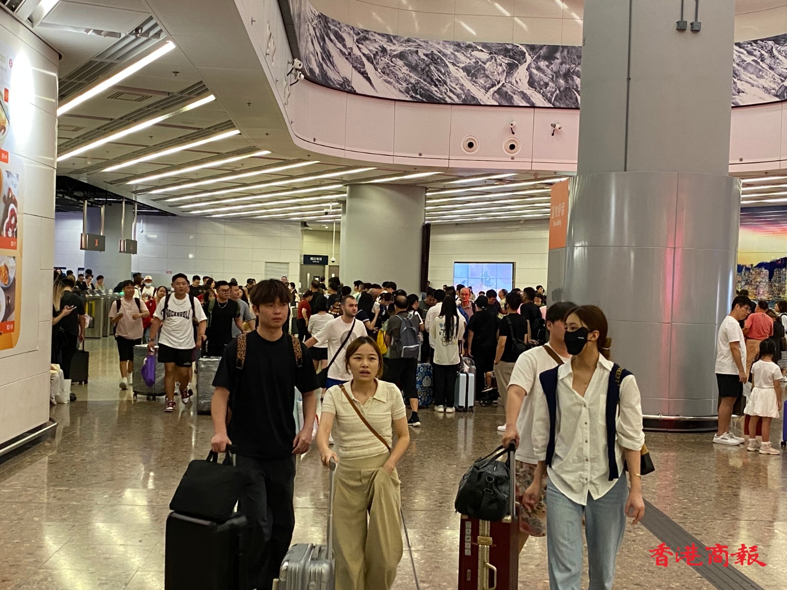 內(nèi)地國(guó)慶適逢中秋節(jié)合共有8日假期,不少內(nèi)地旅客選擇到香港旅遊。港商記者今午到西九高鐵站抵港大堂,見到出閘人流絡(luò)繹不絕。來自浙江的丁先生與友人一起來港玩三天,訂了尖沙嘴的海景房,今晚在房間看煙花,房?jī)r(jià)2000多元一晚,訪港行程主要是到訪海洋公園和迪士尼樂園,以及購(gòu)買名牌手袋和護(hù)膚品等,預(yù)算每人消費(fèi)1.5萬元。