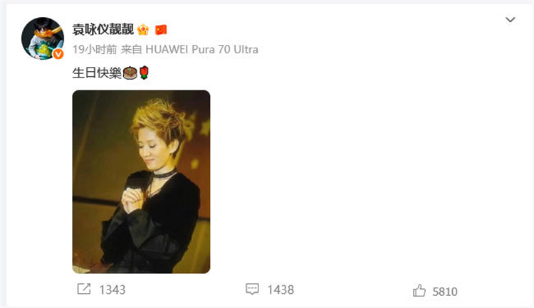 今日(10月10日)凌晨0時(shí)許,袁詠儀為梅艷芳慶62歲冥誕,配文:「生日快樂(lè)」。
