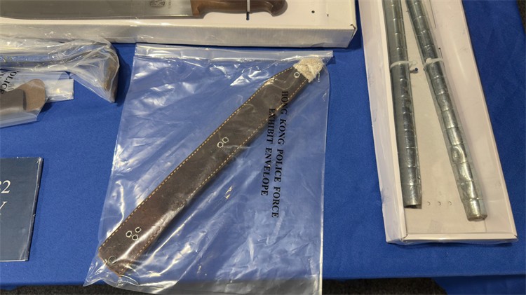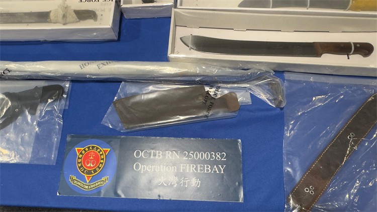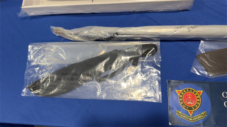行動中警方在車內(nèi)檢獲一批攻擊性武器,包括牛肉刀、鐵棍、棒球棍、鐵筆及犯案手套。並在附近一間空置村屋及被該團(tuán)夥操控的非法賭檔內(nèi)檢獲另外6把牛肉刀。
