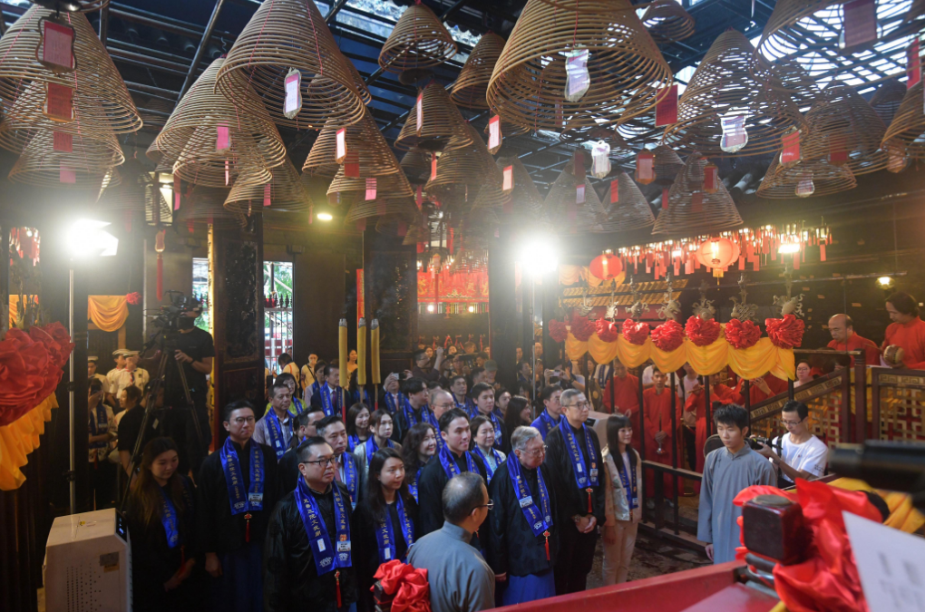 麥美娟致辭時表示,有178年歷史的文武廟,是極具代表性的歷史建築,深受信眾的崇敬,亦是本港重要的文化地標(biāo)和旅遊景點,秋祭儀式是具意義深遠的儀式,吸引市民和遊客參與,能加深公眾對民間信仰和風(fēng)俗習(xí)慣的認識,有助保育本地的歷史文化。