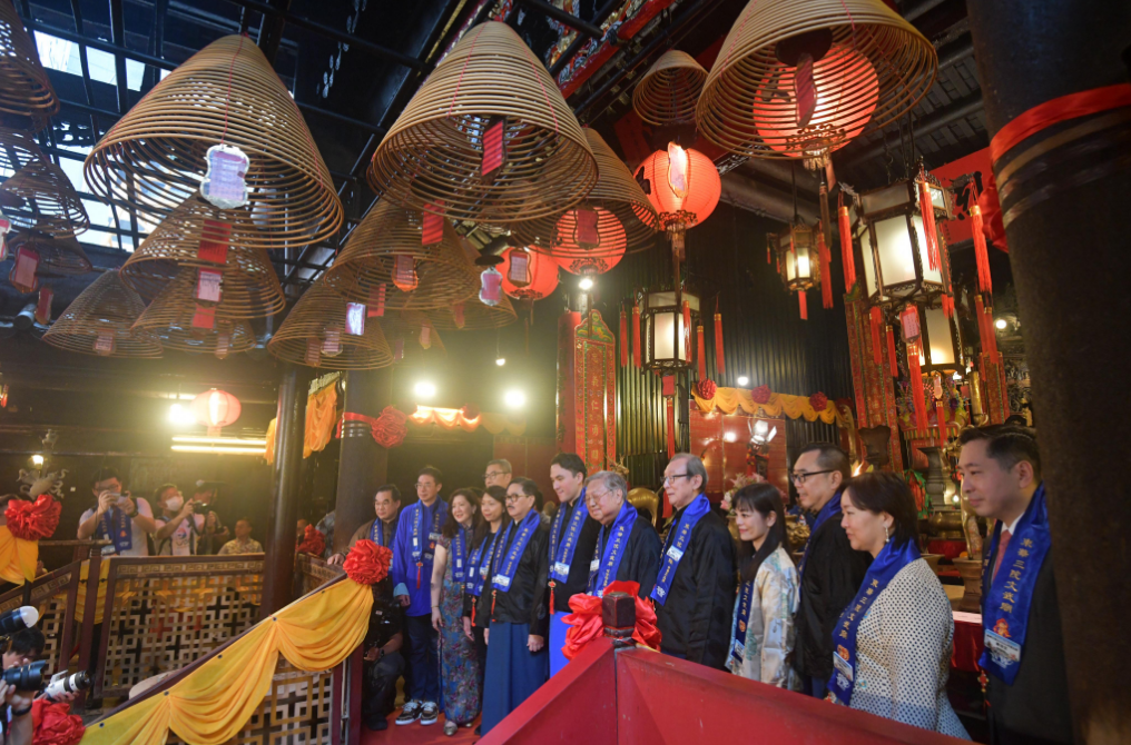 東華三院今日(12日)舉行「文武二帝出巡暨秋祭大典」,吸引大批市民及遊客沿途觀賞,場面熱鬧,充分展現(xiàn)傳統(tǒng)文化在社區(qū)的活力與傳承。民政及青年事務(wù)局局長麥美娟,東華三院主席何猷啟,中聯(lián)辦協(xié)調(diào)部副部長陳澤濤、中西區(qū)民政事務(wù)專員鄭建瑩、警務(wù)處中區(qū)指揮官汪威遜等嘉賓主持點睛簪花儀式,近500人的出巡隊伍由上環(huán)文化廣場出發(fā),經(jīng)摩利臣街、皇后大道中及水坑口街,抵達荷李活道文武廟。