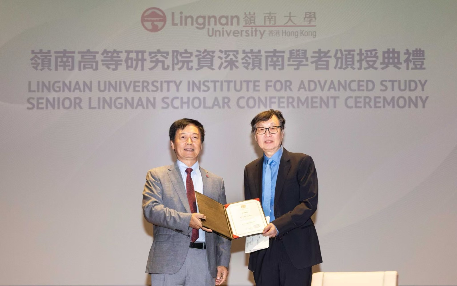 許子?xùn)|教授獲嶺大校長(zhǎng)秦泗釗教授頒授「資深嶺南學(xué)者」,正式加入「嶺南高等研究院」。