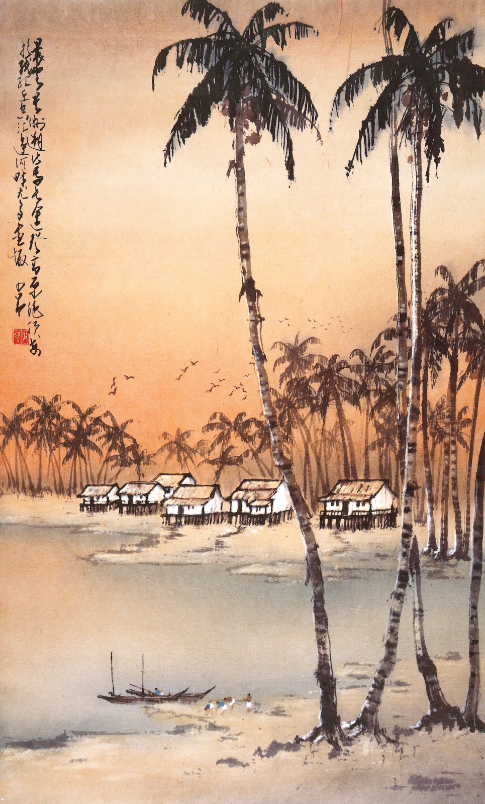 趙少昂作品《馬來殘照》,1950至1960年代。