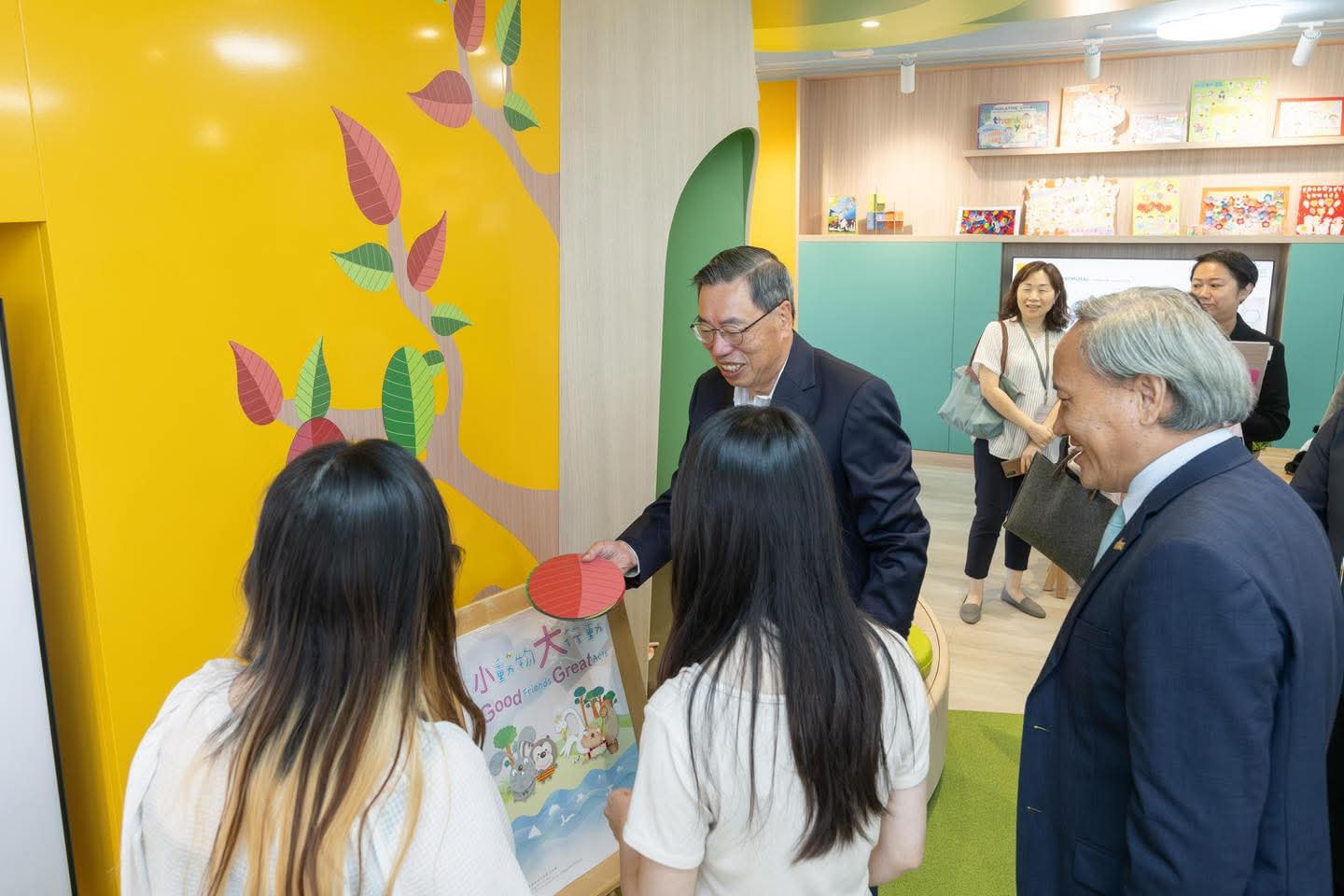 梁君彥提及,其中為幼稚園學(xué)生而設(shè)的兒童學(xué)習(xí)室(Children's Corner)最令人眼前一亮。學(xué)習(xí)室原本位於地下大堂圖書館旁邊,現(xiàn)已遷往3樓,面積較以前大增50%,設(shè)計(jì)以模擬大樹、藍(lán)天白雲(yún)為主調(diào),色彩繽紛,賞心悅目。這處本來是秘書處的辦公室,但秘書處樂意遷出,讓小朋友可在美麗的環(huán)境中,愉快學(xué)習(xí)公民教育課。他和知專師生都相信,這個(gè)擁有無敵維港海景的全新兒童學(xué)習(xí)室,很可能是全港景觀最靚的兒童學(xué)習(xí)室。歡迎幼稚園學(xué)生到訪。