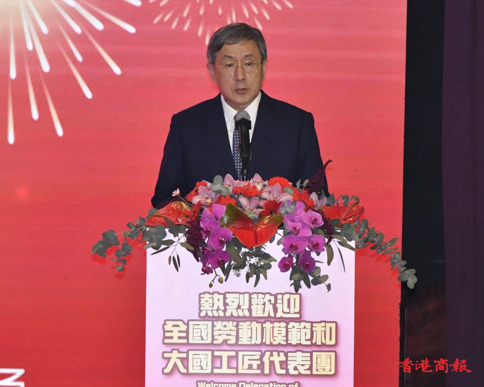 全國勞動模範(fàn)和大國工匠代表團歡迎儀式今舉行,政務(wù)司副司長卓永興出席並致辭。蔡啟文攝