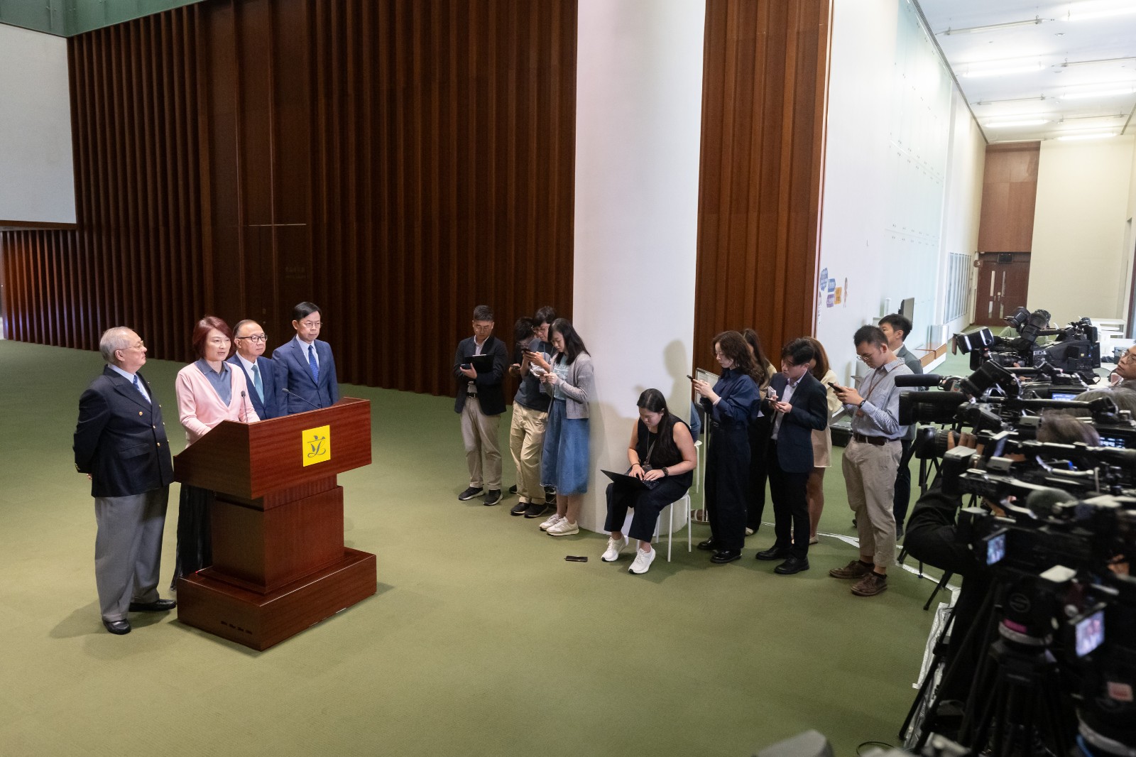 立法會內(nèi)委會主席李慧瓊(左二)等人會見傳媒。立法會供圖