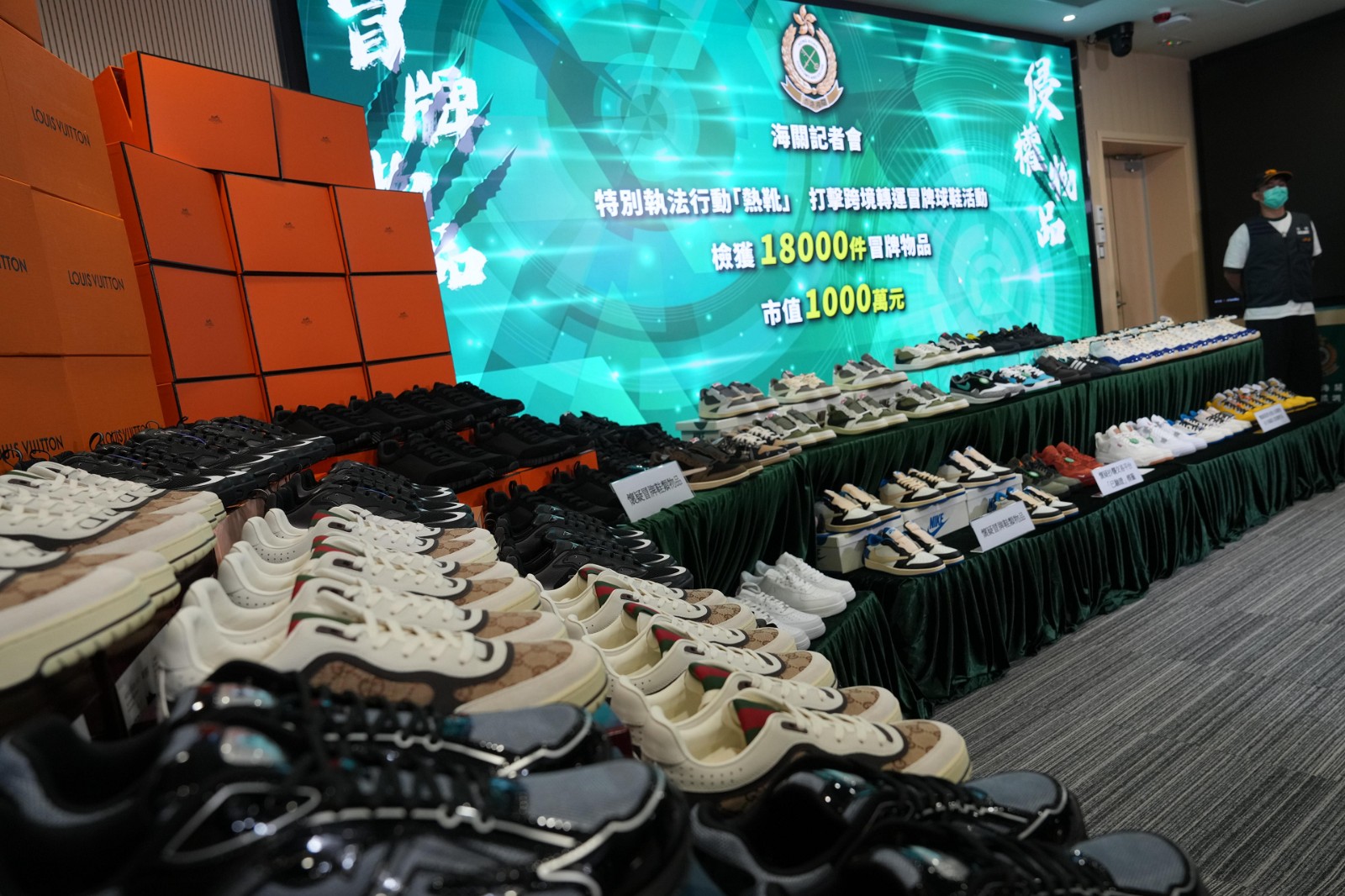 海關(guān)過去兩周展開特別行動打擊跨境轉(zhuǎn)運冒牌波鞋活動,檢獲1.8萬件冒牌物品,市值約1000萬元,相信冒牌物品運住歐美等地,行動中拘捕2名入境貨車司機。