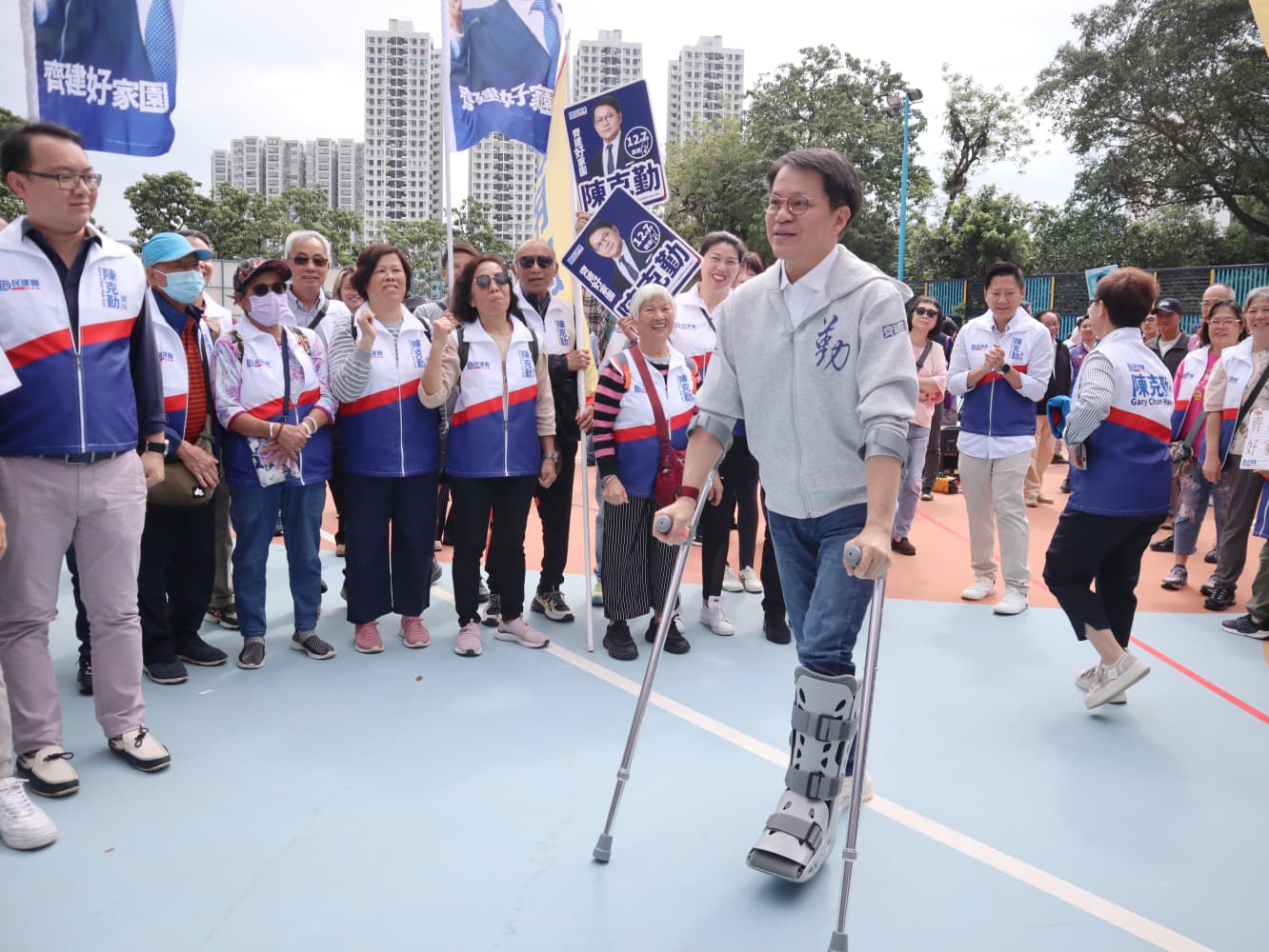 陳克勤負(fù)傷出席集氣大會。(記者 馮瀚文攝)