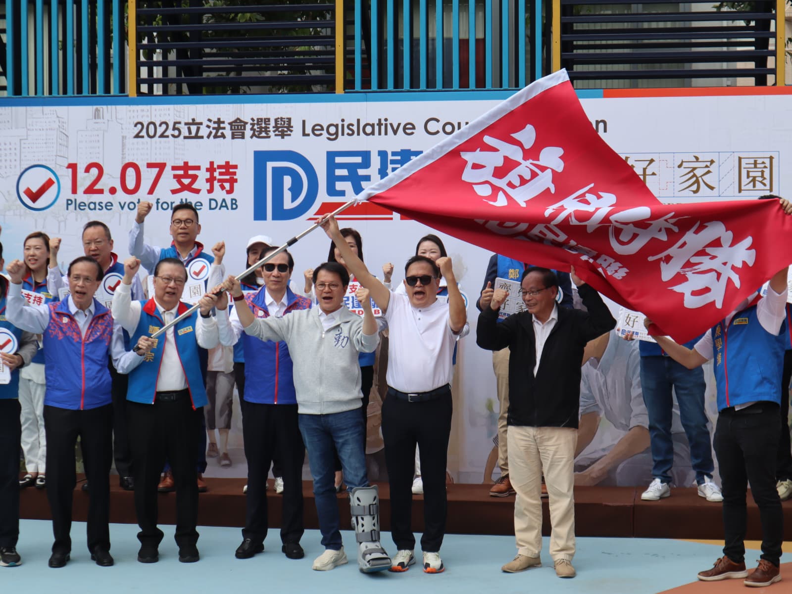 立法會選舉提名期今日(24日) 展開,民建聯(lián)將派出26名成員參選。民建聯(lián)監(jiān)委會主席盧文端、會務(wù)顧問譚耀宗、葉國謙、彭長緯、簡志豪,聯(lián)同助選團(tuán)及義工,今早在沙田為民建聯(lián)各位候選人打氣,並預(yù)祝各候選人在選戰(zhàn)中「旗開得勝」,同時呼籲市民在選舉日(12月7日)踴躍投票。