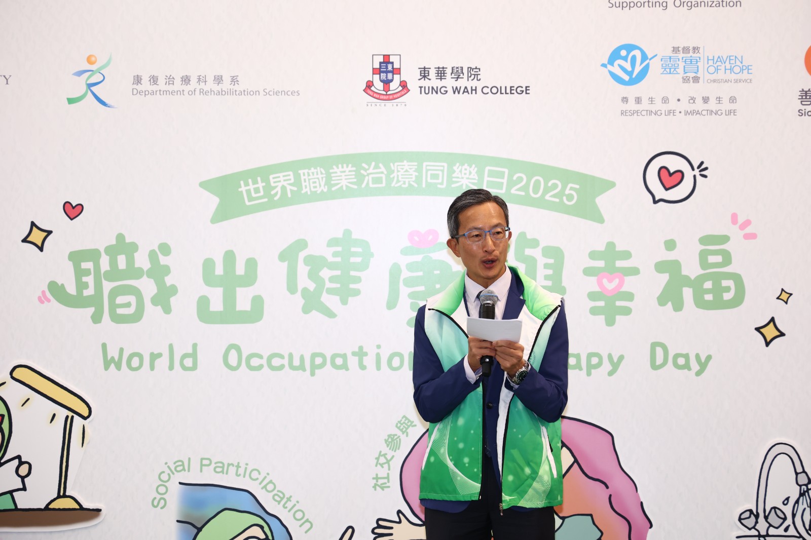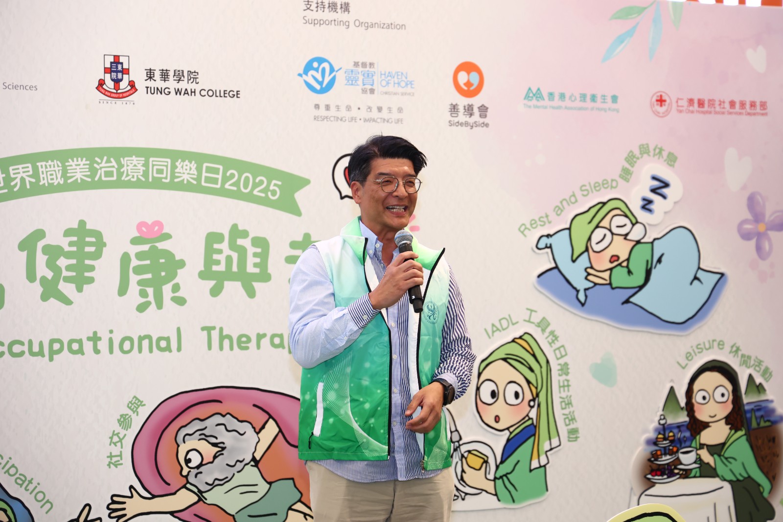 香港職業(yè)治療學(xué)會(huì)今日(26日)舉辦「世界職業(yè)治療同樂日2025」,以互動(dòng)攤位、復(fù)康者分享及跨界表演展示職業(yè)治療如何在社區(qū)層面促進(jìn)全民健康,呼應(yīng)政府加強(qiáng)基層醫(yī)療與支援復(fù)康人士的方向?;鶎俞t(yī)療健康專員彭飛舟醫(yī)生及立法會(huì)議員林哲玄醫(yī)生擔(dān)任開幕試主禮嘉賓。    職業(yè)治療學(xué)會(huì)會(huì)長方少麗表示,「同樂日」旨在透過教育講解與現(xiàn)場體驗(yàn),向市民介紹職業(yè)治療在長者家居安全與防跌、兒童感覺統(tǒng)合訓(xùn)練、社區(qū)復(fù)康及精神健康復(fù)元等領(lǐng)域的專業(yè)角色,並強(qiáng)調(diào)「預(yù)防勝於治療」的理念。