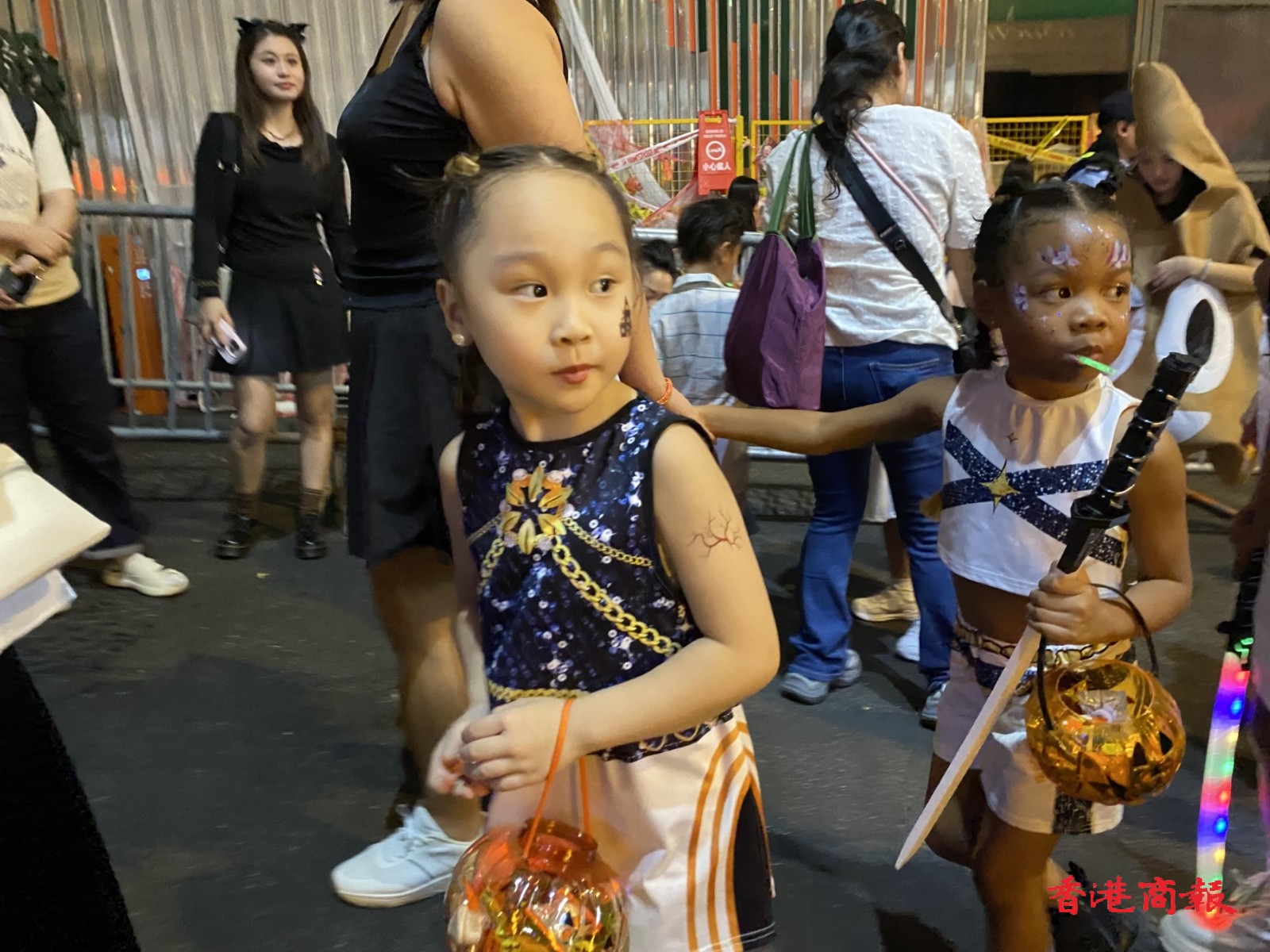 大埔一間幼稚園10多名家長(zhǎng)帶同子女,一起扮鬼扮怪前來(lái)「派糖」。朱先生說(shuō):「我們住大埔,很少出來(lái)中環(huán),未婚前也很少浦吧,今次是第一次與子女來(lái)感受氣氛,小朋友見到咁多『鬼』也沒(méi)有害怕,只有開心?!?/p>