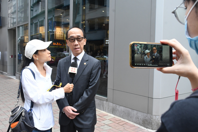 今日,江旻憓交表前聯(lián)同支持者見記者,信和集團主席黃永光、已報名參選立法會選委界別美麗華集團首席營運總裁陳宗彝現(xiàn)身。