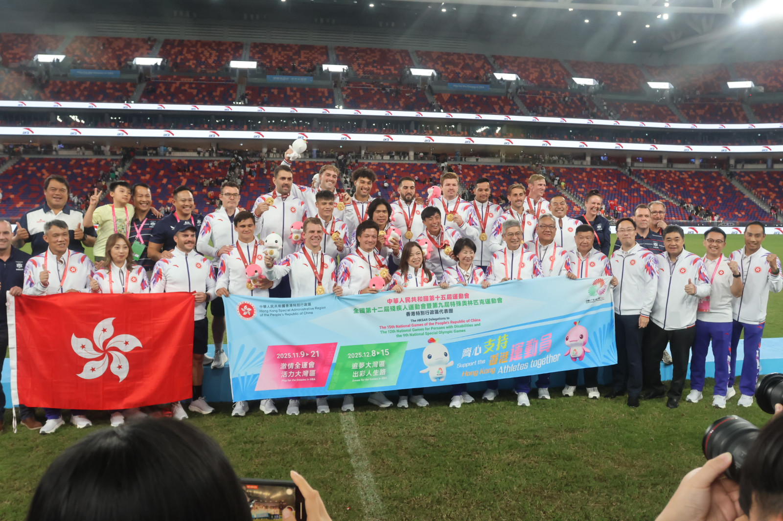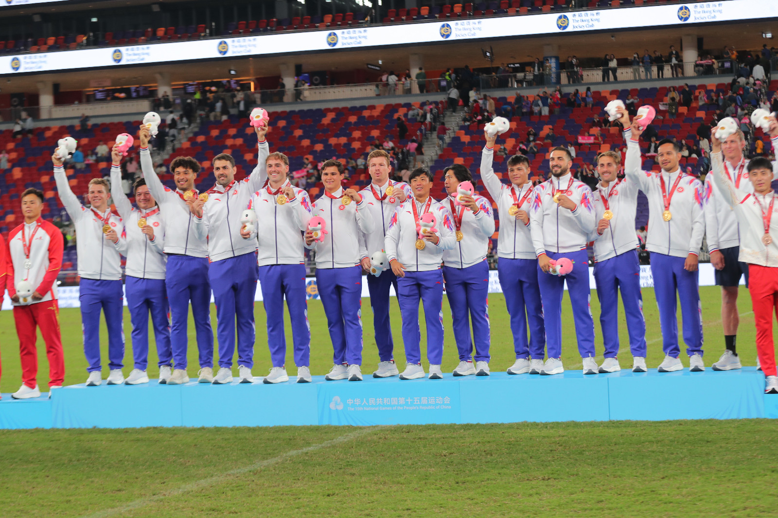 啟德主場(chǎng)館周五晚(14日)舉行全運(yùn)會(huì)七人欖球賽事的金牌戰(zhàn),香港男子隊(duì)最終以26比19擊敗衛(wèi)冕的山東,主場(chǎng)奪金,並在頒獎(jiǎng)嘉賓、香港賽馬會(huì)主席廖長(zhǎng)江手上接過獎(jiǎng)牌,七欖男隊(duì)將獲「賽馬會(huì)優(yōu)秀運(yùn)動(dòng)員獎(jiǎng)勵(lì)計(jì)劃」獎(jiǎng)金150萬港元,以作鼓勵(lì)。我們現(xiàn)在一齊重溫港隊(duì)在頒獎(jiǎng)儀式的高光時(shí)刻。(志誠(chéng))