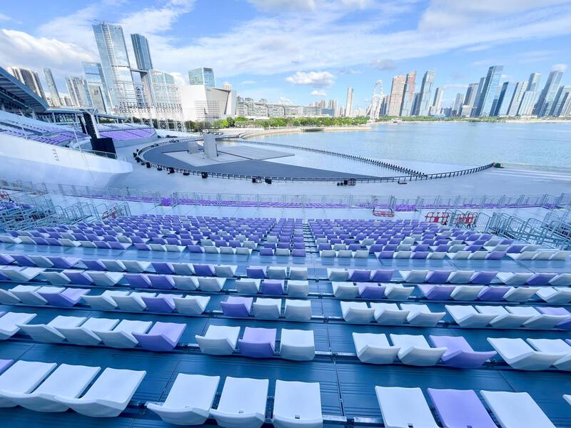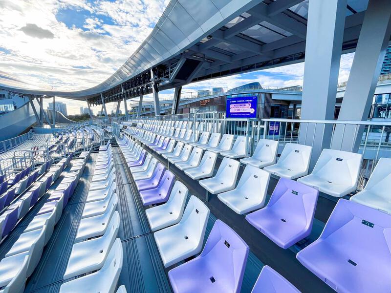 據(jù)其介紹,本次閉幕式採(cǎi)用的金屬看臺(tái)系統(tǒng)為領(lǐng)先體育安易拆裝式金屬看臺(tái),該產(chǎn)品採(cǎi)用模塊化預(yù)製設(shè)計(jì),可實(shí)現(xiàn)現(xiàn)場(chǎng)快速組裝與拆卸,並適應(yīng)歡樂港灣劇場(chǎng)獨(dú)特的海濱地形和周邊景觀布局進(jìn)行靈活定製,最大程度滿足音樂演出與城市景觀融合的需求。