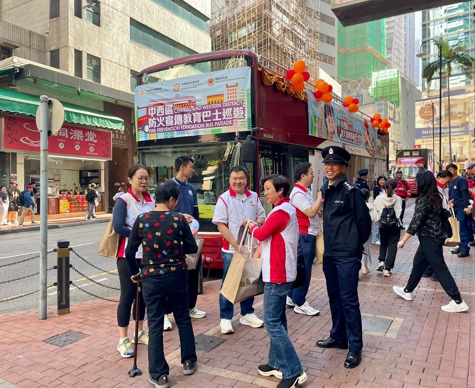 民政事務(wù)總署表示,中西區(qū)民政處與中西區(qū)防火委員會(huì)聯(lián)同消防處合辦「中西區(qū)防火宣傳教育巴士巡遊」,防火委員到上環(huán)街市、堅(jiān)彌地城新海旁和中環(huán)5號(hào)渡輪碼頭派發(fā)紀(jì)念品,宣傳防火心得和重要性。
