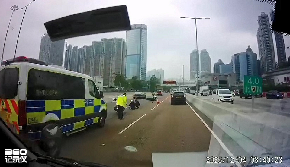 西九龍公路發(fā)生交通意外,今日(4日)早上8時許,兩名鐵騎士駕電單車往葵涌方向駛至近奧運港鐵站時,懷疑失控翻車,兩人倒地受傷,警方接報到場封閉一段中線,正調(diào)查意外原因。受意外影響,西九龍公路往葵涌方向受阻近一小時。(記者 區(qū)天海)