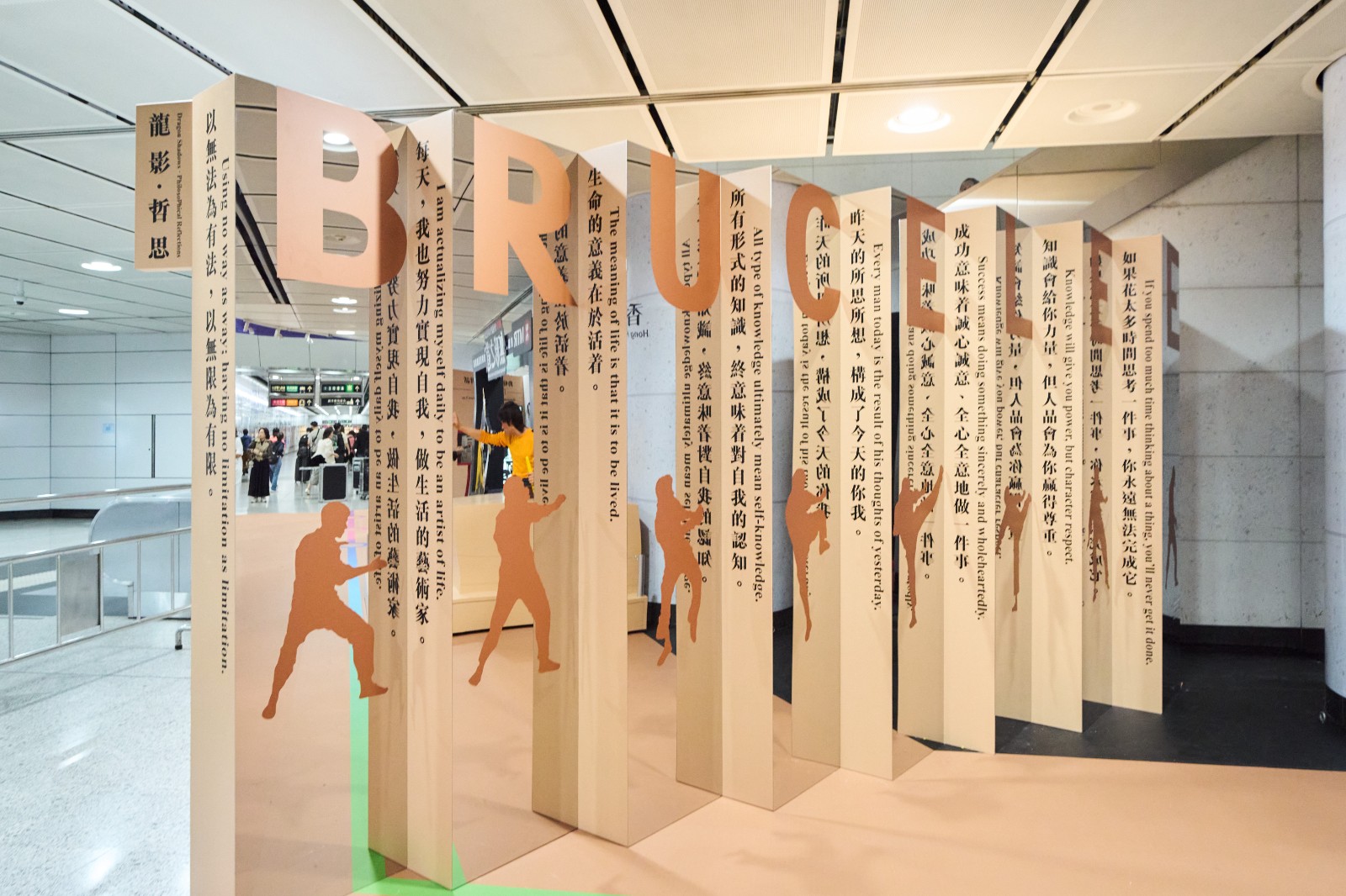 《李小龍誕生85周年紀(jì)念展:無(wú)形之道》由香港站及中環(huán)站兩大展區(qū)組成,以一動(dòng)一靜的方式呈現(xiàn)。位於香港站內(nèi)、展期為即日起至12月8日的「港鐵藝術(shù)舞臺(tái)」限定互動(dòng)體驗(yàn),以動(dòng)態(tài)裝置與互動(dòng)體驗(yàn)為主,以多重感官探索李小龍的非凡人生。如展品《龍影·哲思》雙面藝術(shù)牆,採(cǎi)用了本地藝術(shù)家阮繼增所繪畫(huà)的李小龍動(dòng)作剪影,一面重現(xiàn)經(jīng)典戰(zhàn)鬥姿勢(shì)象徵「武者」精神,另一面則展現(xiàn)哲學(xué)金句,從視覺(jué)與思想的雙重體驗(yàn)中感受李小龍精神的哲學(xué)深度。另一展品「哲學(xué)對(duì)話亭」,可與這位傳奇偶像展開(kāi)跨時(shí)空的心靈對(duì)話,拿起聽(tīng)筒就能聆聽(tīng)其發(fā)人深省的哲學(xué)觀點(diǎn),以沉浸式體驗(yàn)反思人生。