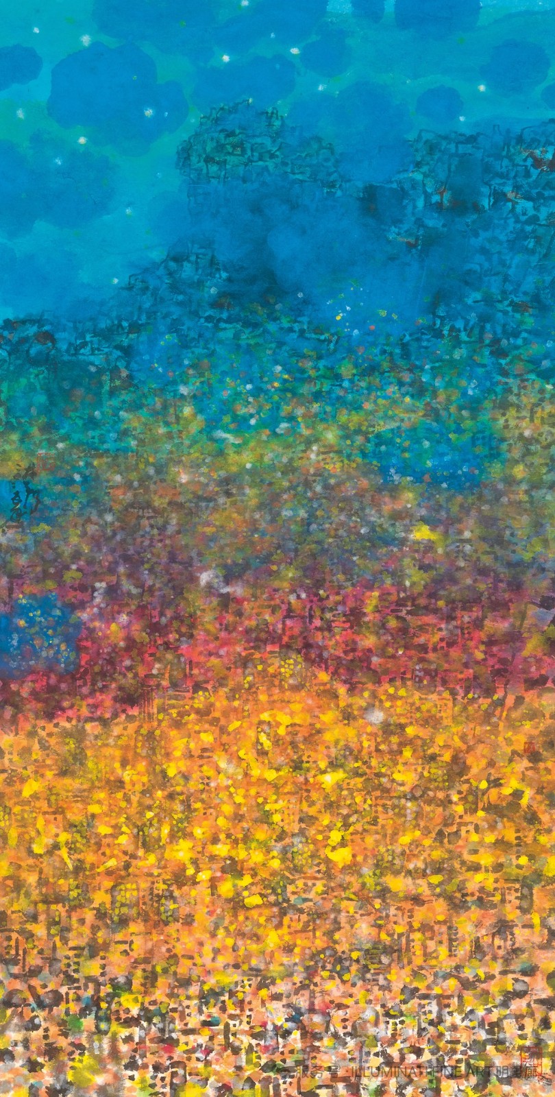 「夜。香港」以展覽名稱同名的作品《夜。香港》為重點(diǎn)展品,作品描繪了維港兩岸夜色,香江晚上,高樓大廈與船隻航行的燈光交映成輝,維港海面波光粼粼。作品墨韻沉著間蘊(yùn)藏夜色特有的層次感,色彩斑斕中可見霓虹與萬家燈火的交織。香港知名地標(biāo)在夜色中若隱若現(xiàn),雖不刻意寫實(shí),卻能讓觀者覓得熟悉的痕跡。