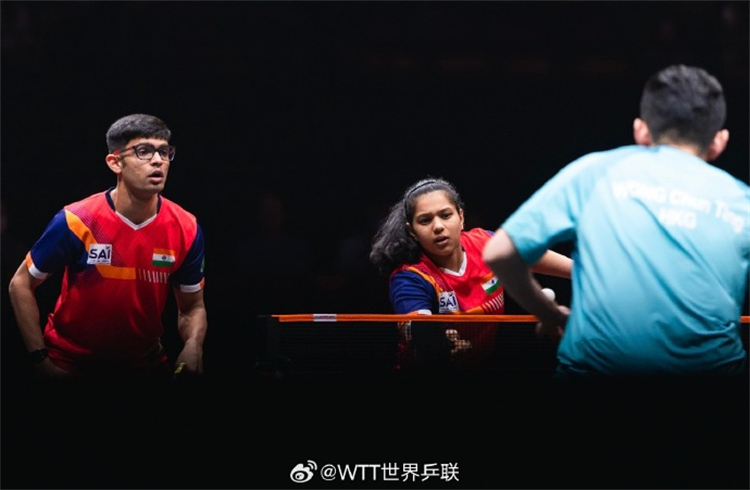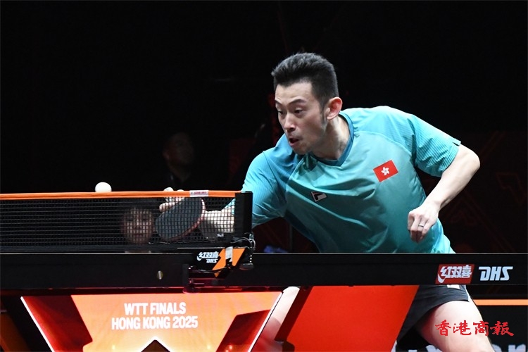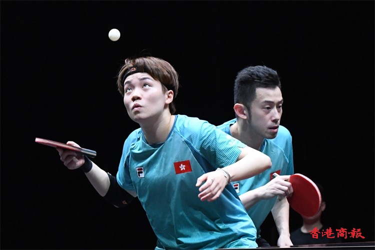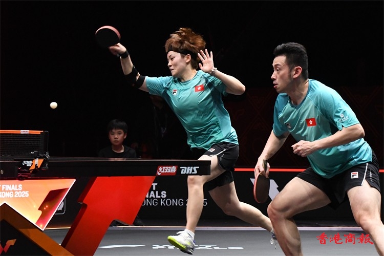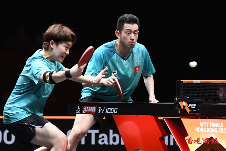 WTT香港總決賽今日(11日)繼續(xù)在紅磡體育館上演。在混雙小組賽中,黃鎮(zhèn)廷/杜凱琹3-2戰(zhàn)勝印度選手瑪納什·沙/奇塔萊,比分為11-7、11-3、4-11、10-12,11-4,拿下首勝。(瀚文 攝)