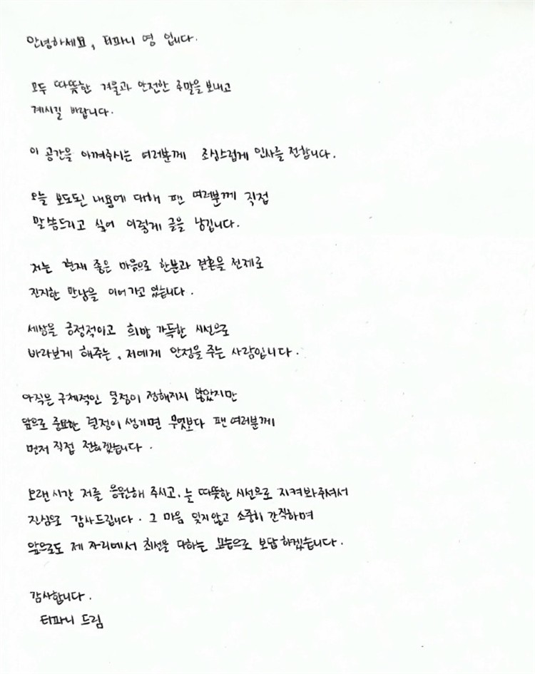 Tiffany發(fā)文稱,「現(xiàn)在的我正以積極的心態(tài),和一個人以結(jié)婚為前提真摯地交往中」。Tiffany稱,他是一位讓我以積極、充滿希望的態(tài)度看待世界,並讓我感到踏實(shí)的人。